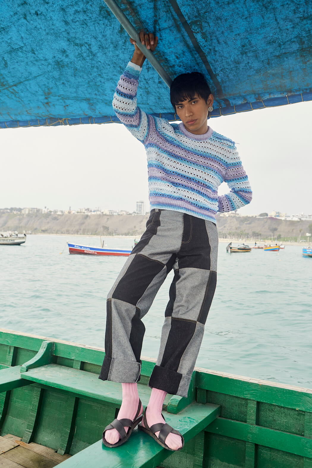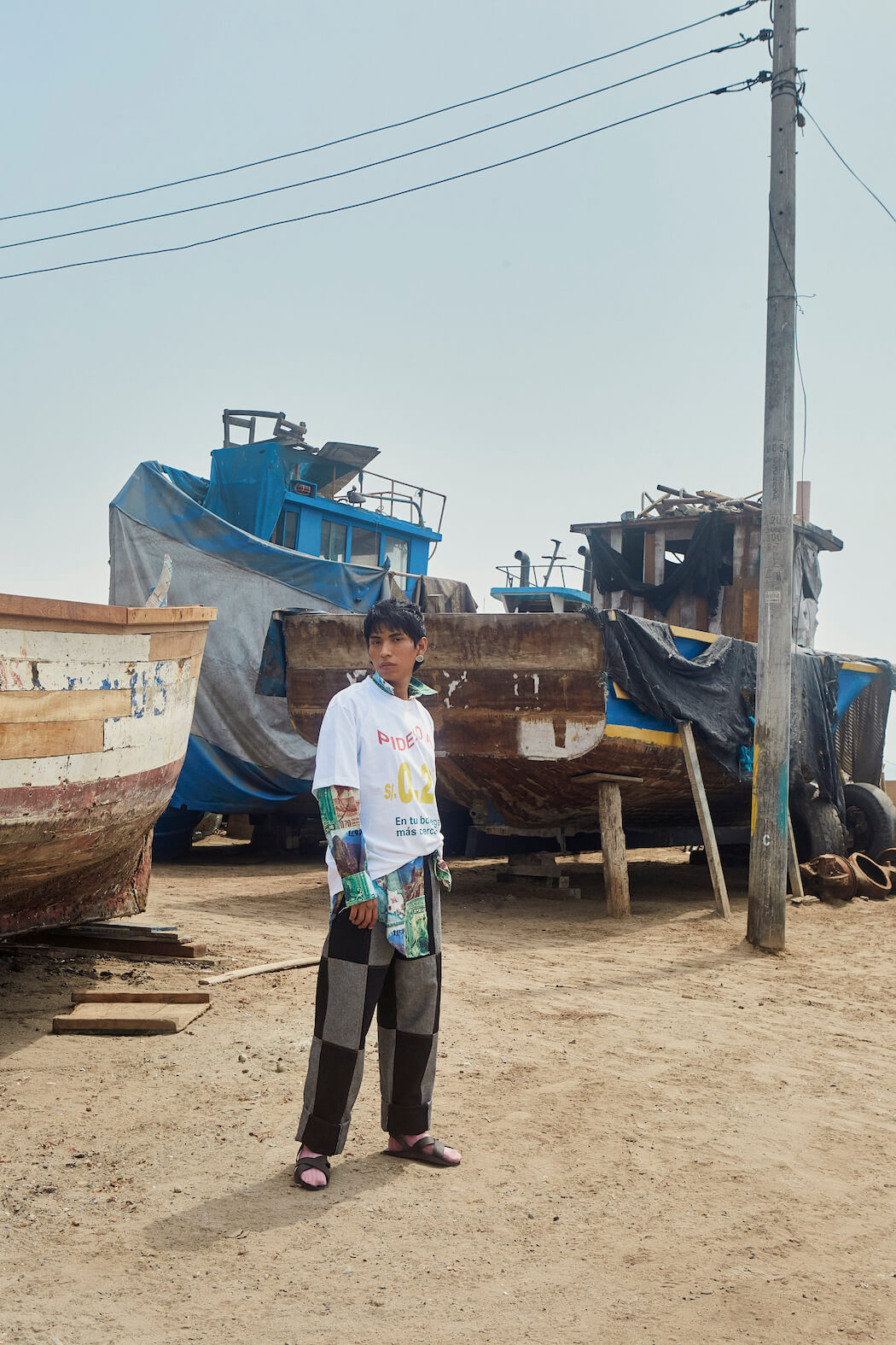 In the campaign, both wear the timeless selection of D.N.I under a visual proposal to return to their childhood memories. That is why in this new proposal, there are different approaches to what Peru captured in its memories through different important elements such as the iconic motorcycle taxis, the beach, the sea and the fishing boats, symbols that to this day continue to inspire the twins behind the firm by reminding them of their childhood in their native Casagrande-Trujillo.