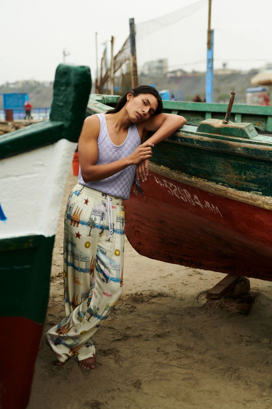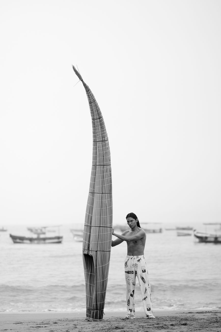 Through a walking tour along with the seashore sunset, the Peruvian twins behind D.N.I, transport us to the warmth of the Peruvian summer culture in their new S/S23 collection. Entitled «Playa, Ceviche y Picarón» Paulo and Roberto Ruiz Muñoz, present pieces that refer to the elements of a classic summer on the beach of Huanchaco, located near their native Casagrande in La Libertad, Peru.