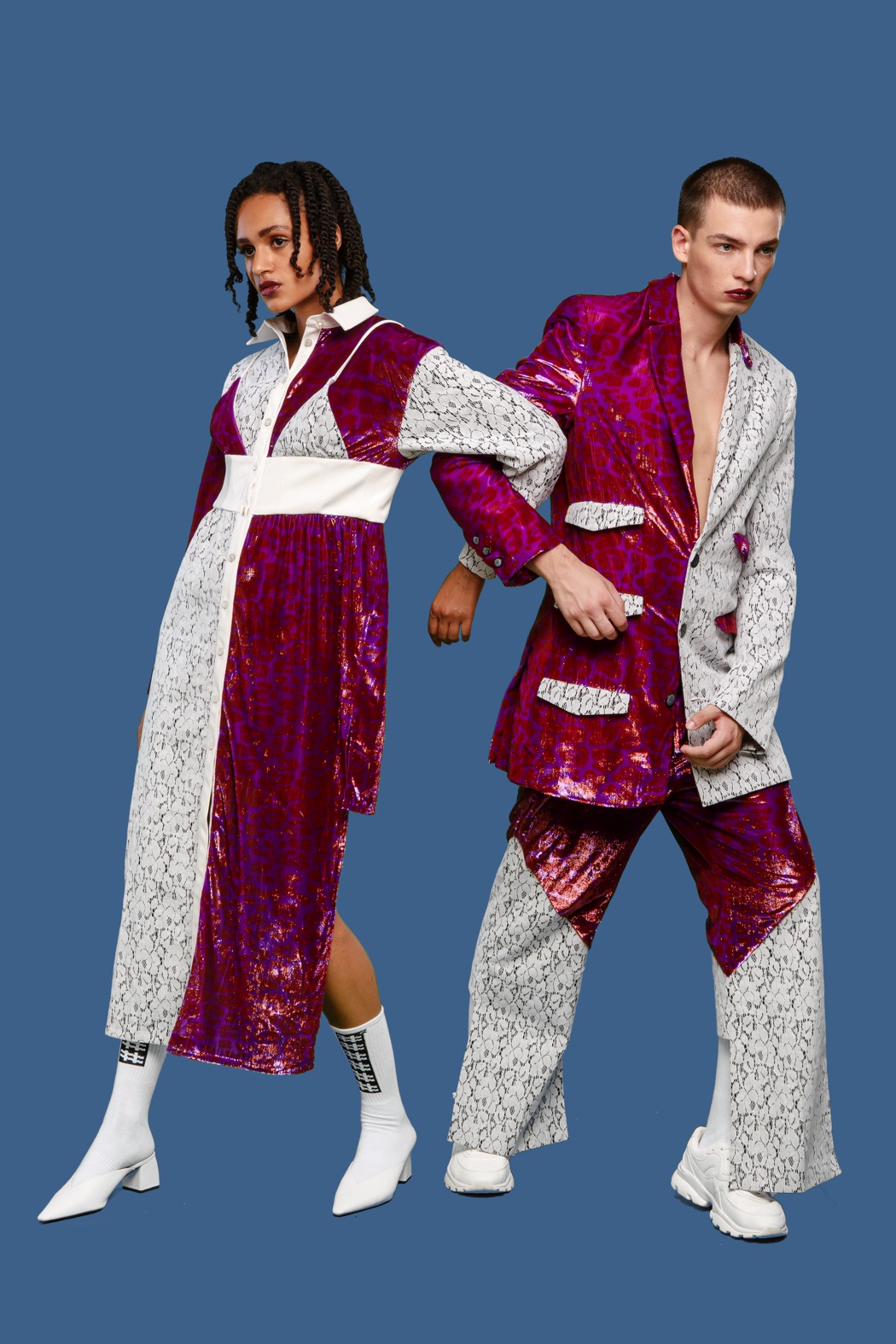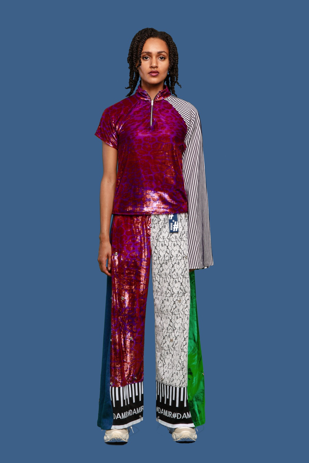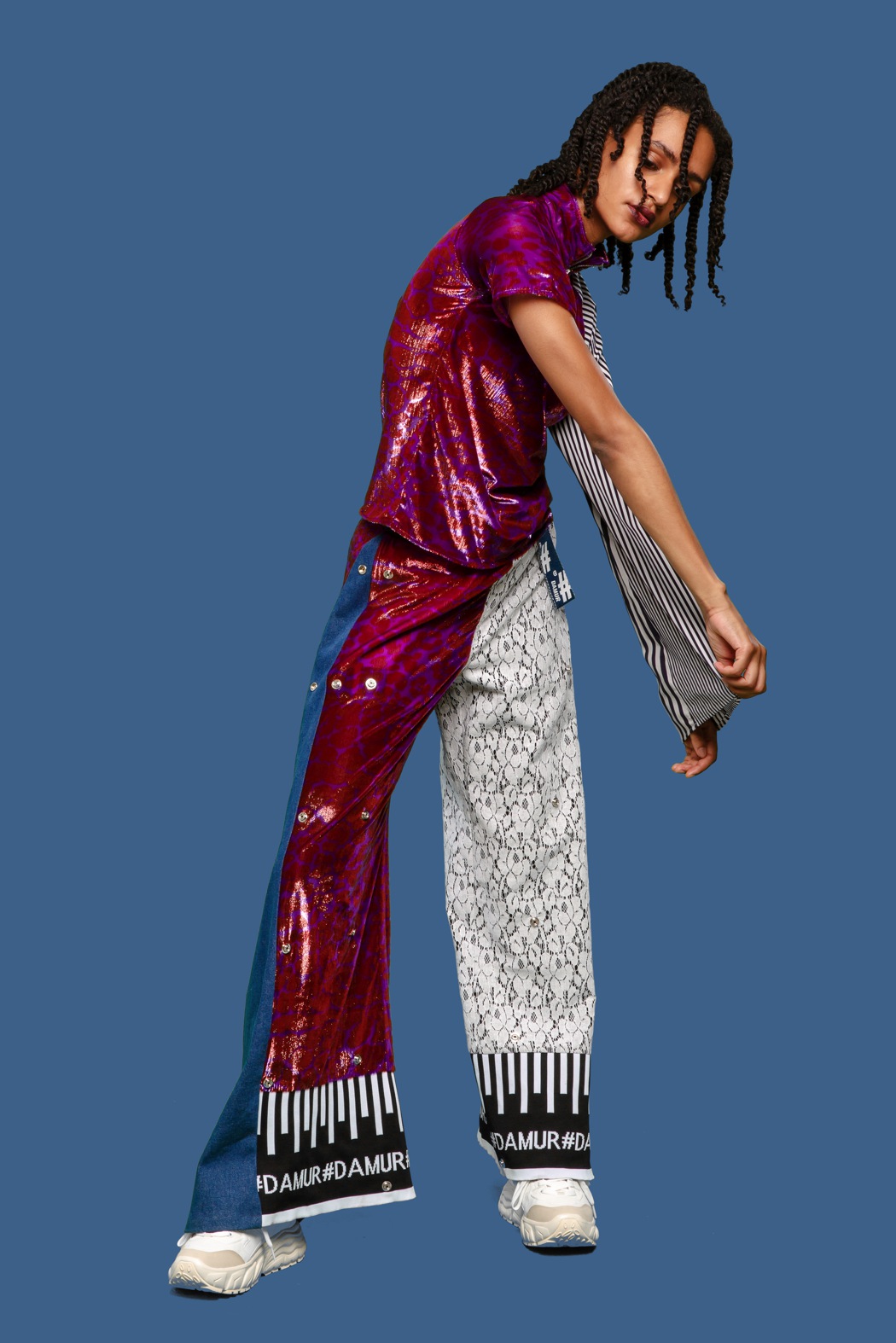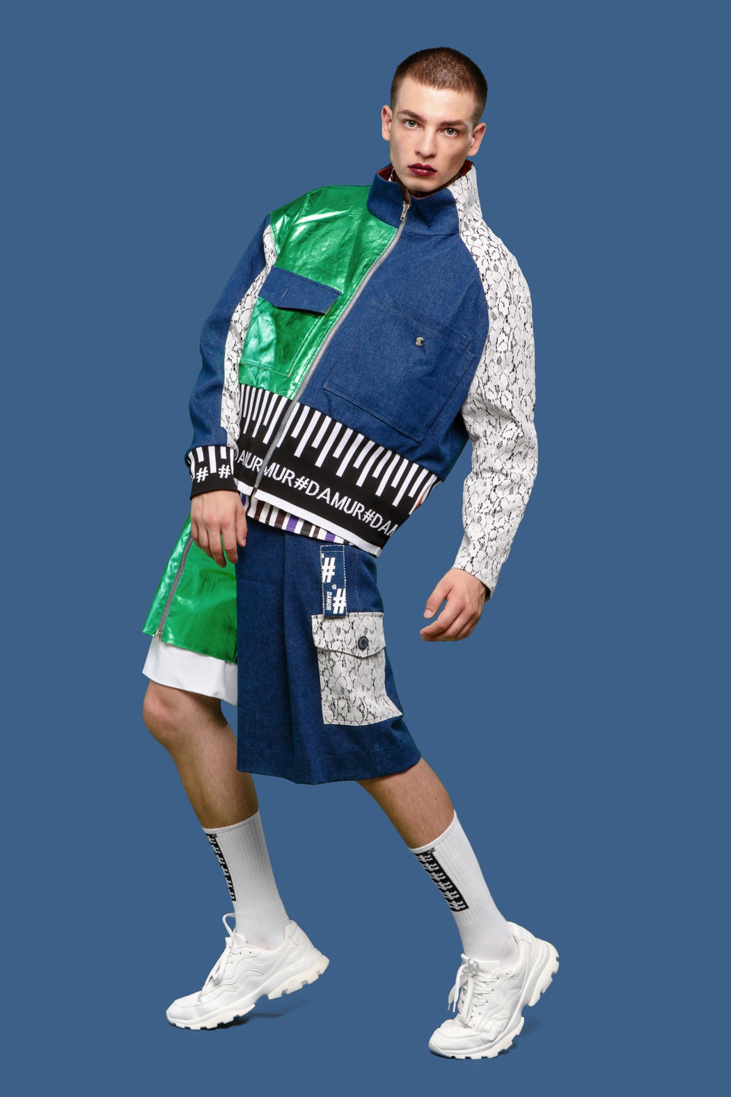 Sophisticated fabrics such as lace are mixed with unconventional PVC details. The cuts are unique playing with asymmetry and colours are contrasted. The black and white pieces are minimalist yet the neon and metallic pieces show how #DAMUR’s version of streetwear is high end.