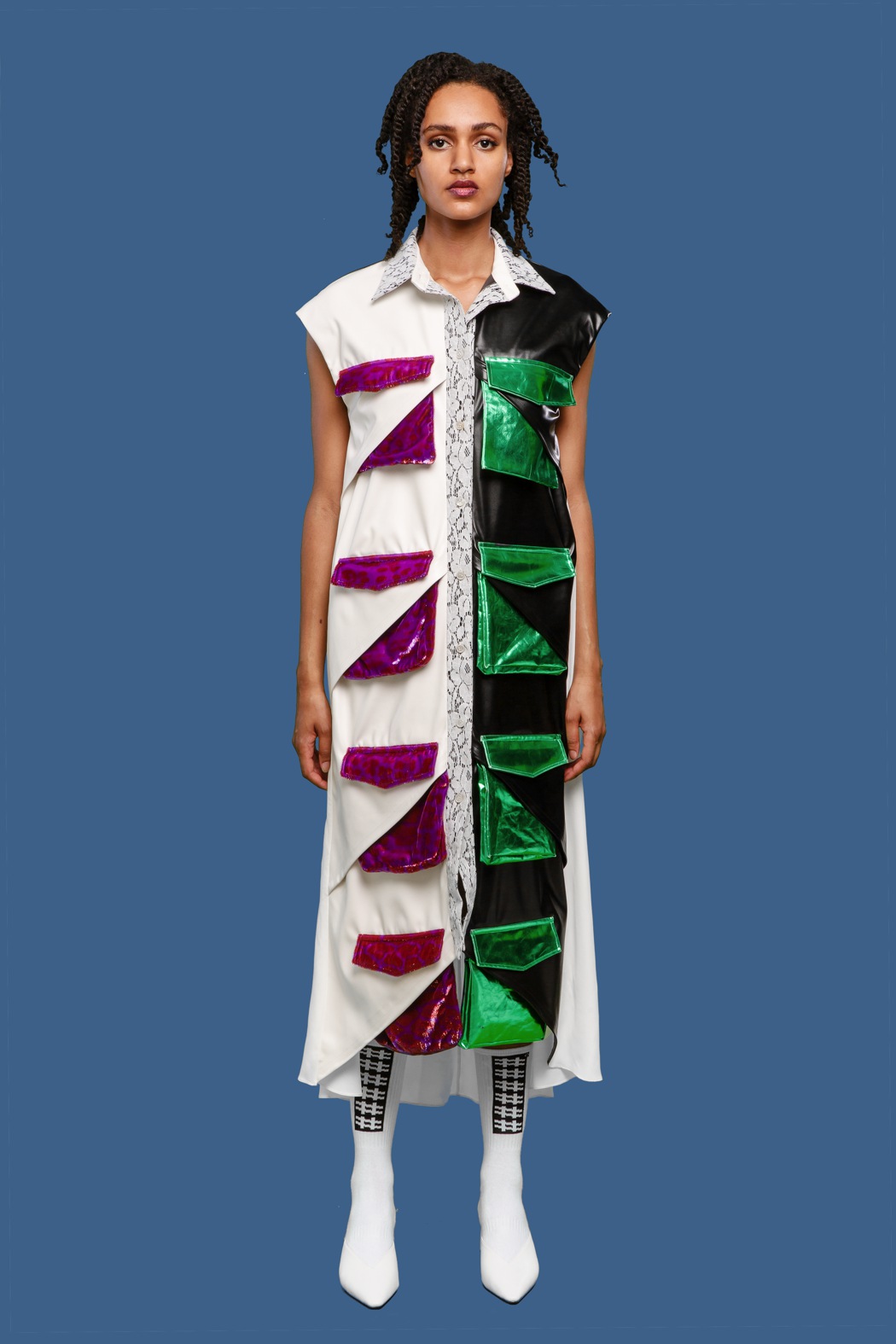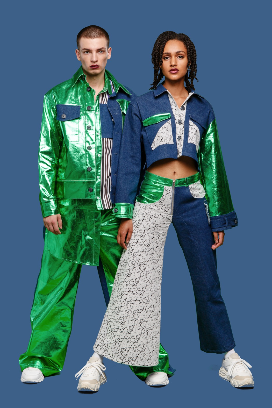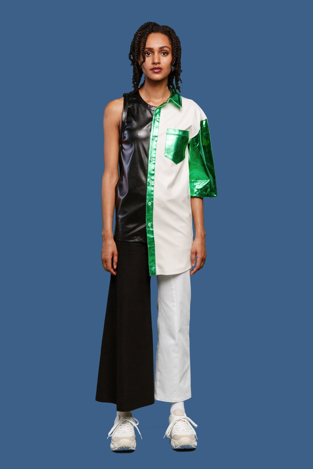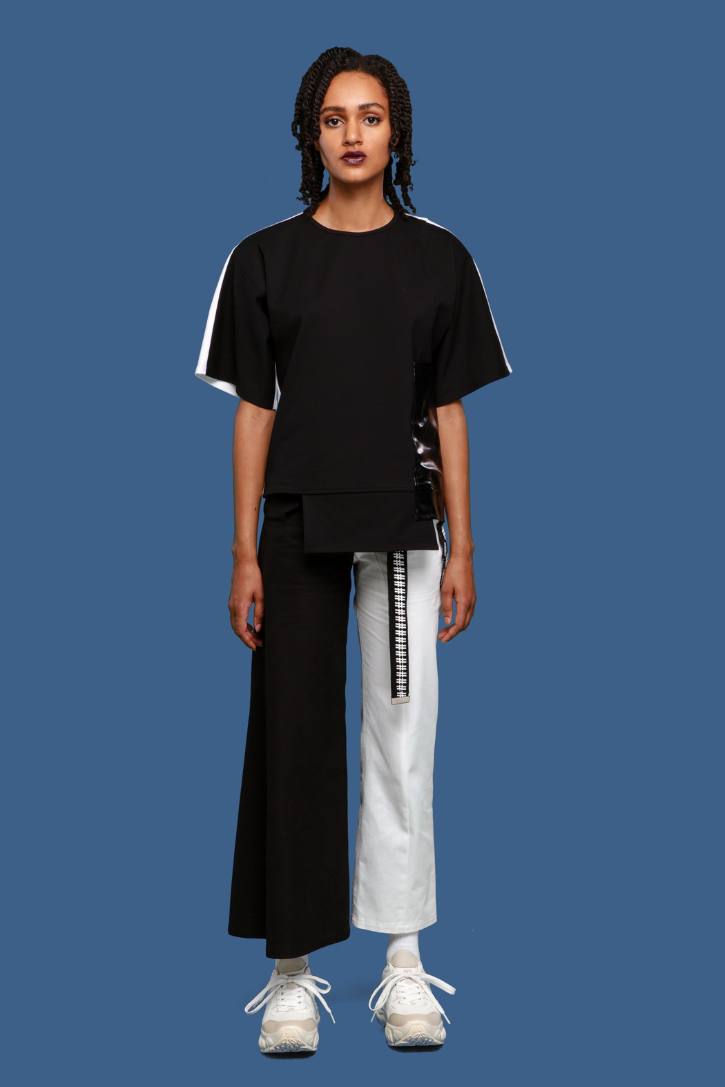 Sophisticated fabrics such as lace are mixed with unconventional PVC details. The cuts are unique playing with asymmetry and colours are contrasted. The black and white pieces are minimalist yet the neon and metallic pieces show how #DAMUR’s version of streetwear is high end.
