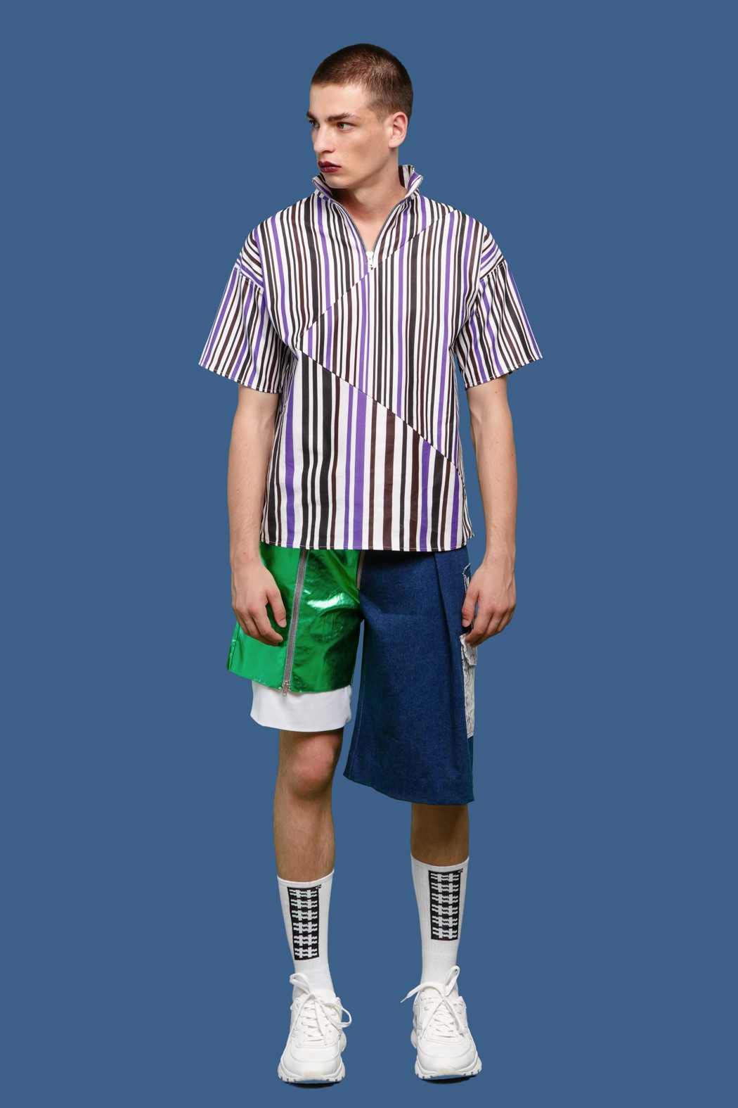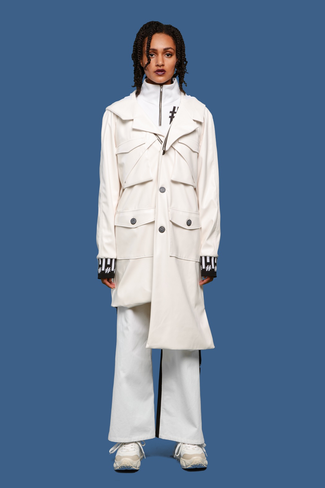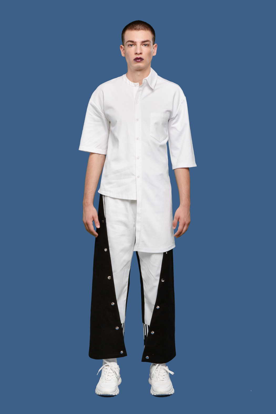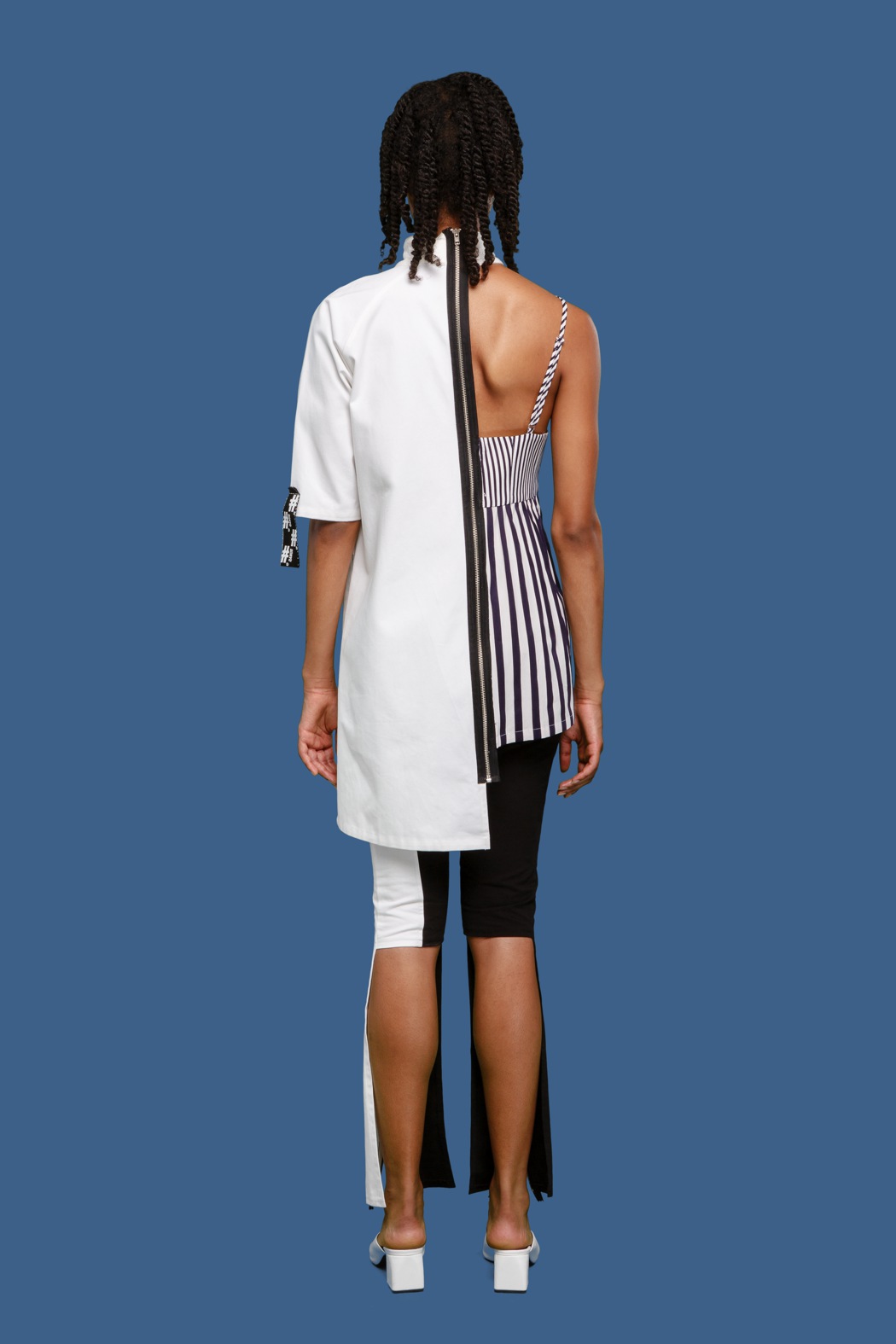 Sophisticated fabrics such as lace are mixed with unconventional PVC details. The cuts are unique playing with asymmetry and colours are contrasted. The black and white pieces are minimalist yet the neon and metallic pieces show how #DAMUR’s version of streetwear is high end.