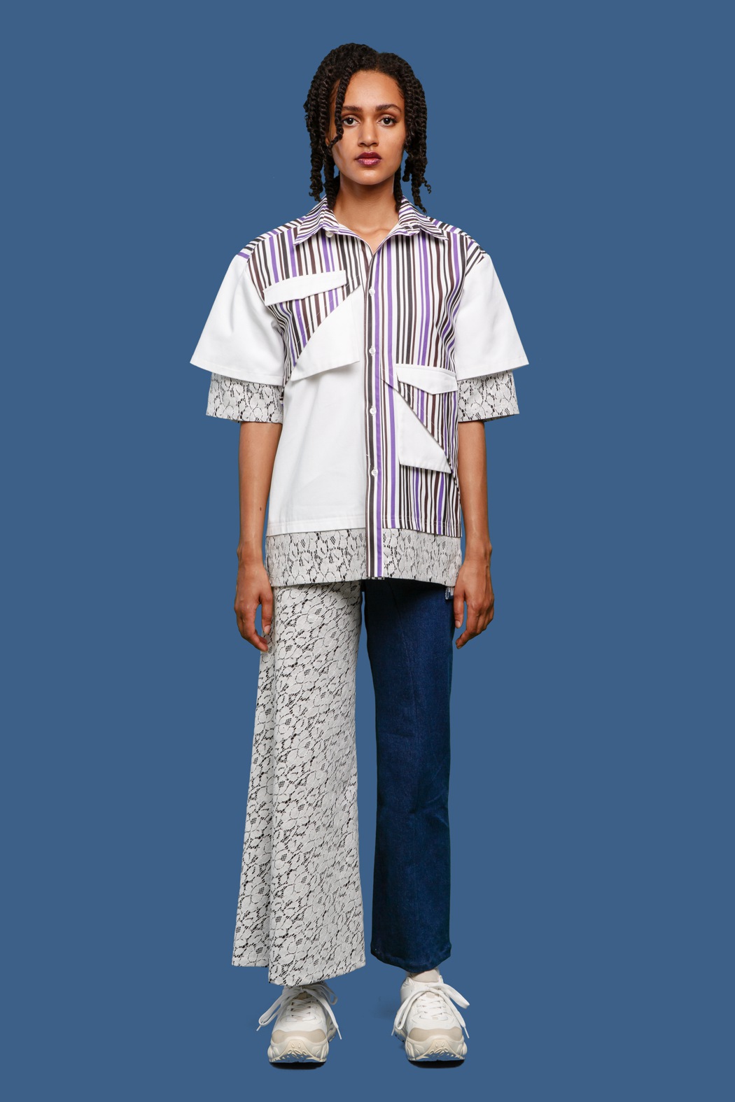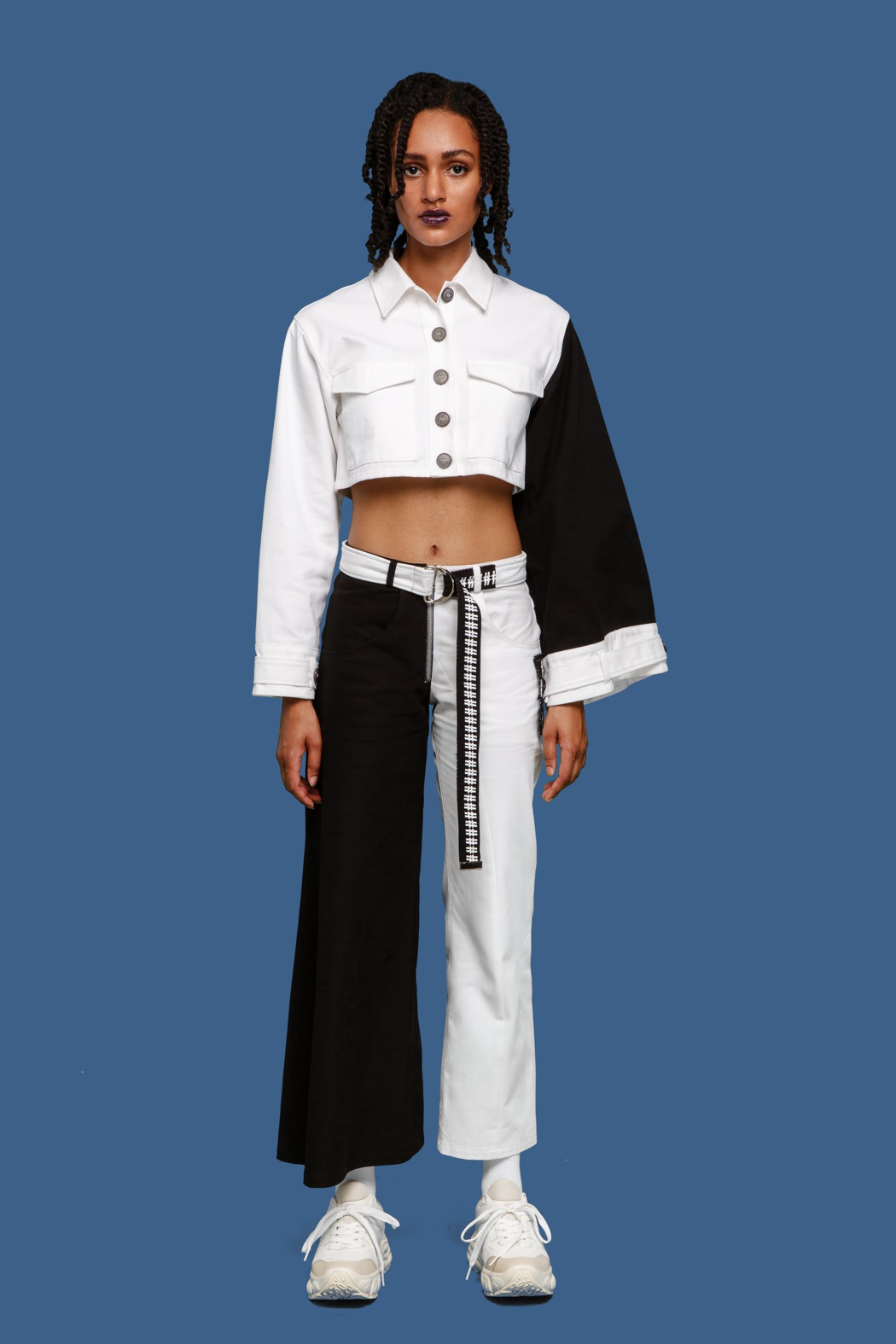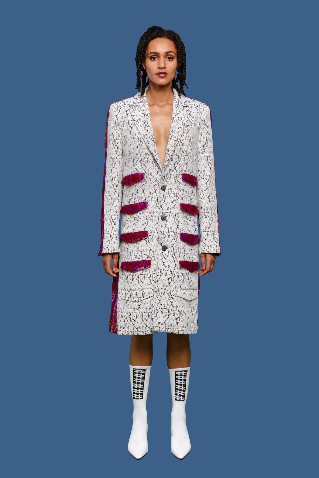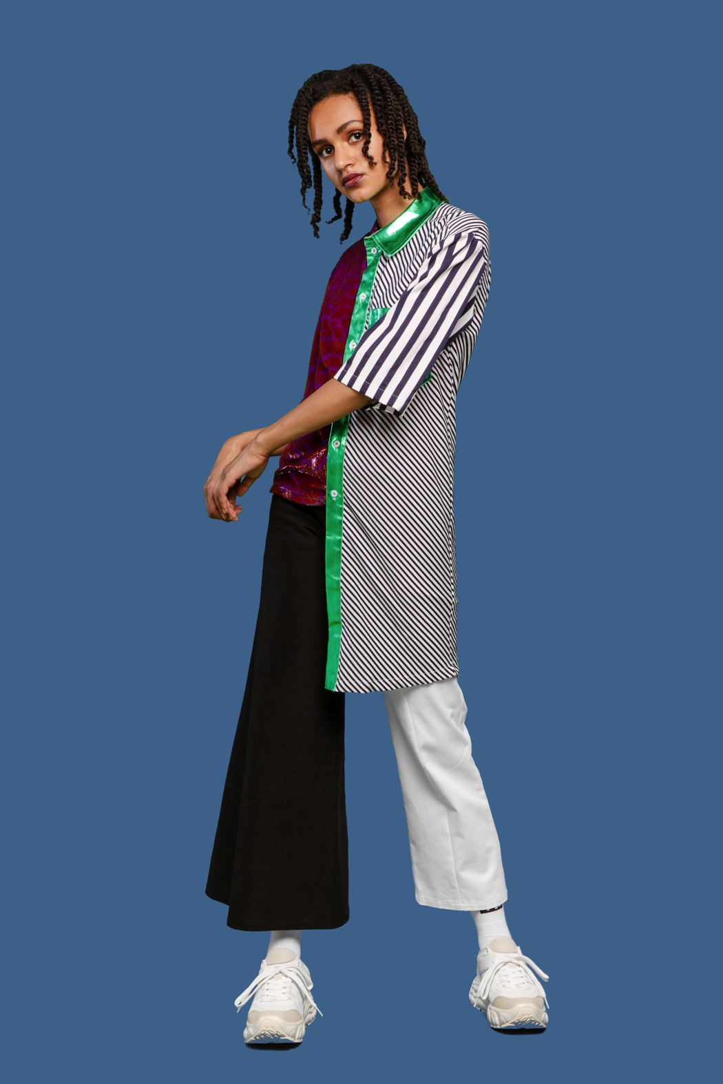 Sophisticated fabrics such as lace are mixed with unconventional PVC details. The cuts are unique playing with asymmetry and colours are contrasted. The black and white pieces are minimalist yet the neon and metallic pieces show how #DAMUR’s version of streetwear is high end.