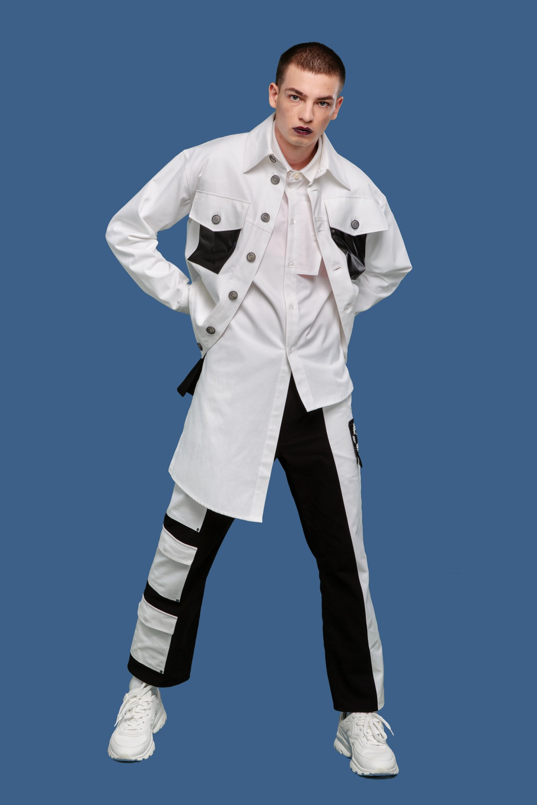 Sophisticated fabrics such as lace are mixed with unconventional PVC details. The cuts are unique playing with asymmetry and colours are contrasted. The black and white pieces are minimalist yet the neon and metallic pieces show how #DAMUR’s version of streetwear is high end.