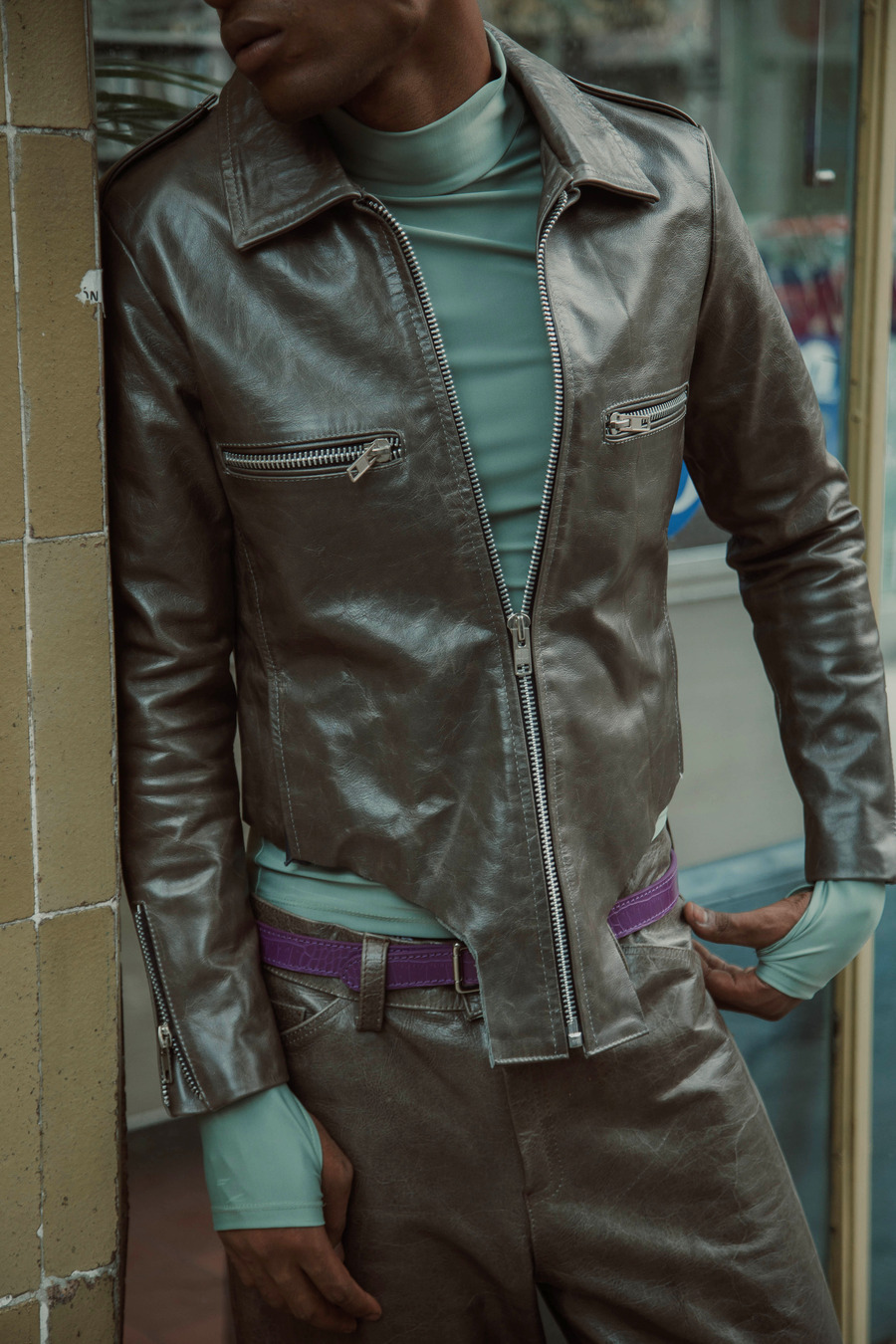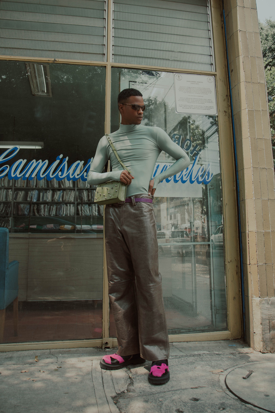 Botas: PradaTop, cinturón, chamarra, pantalón y bolsa: Toronero