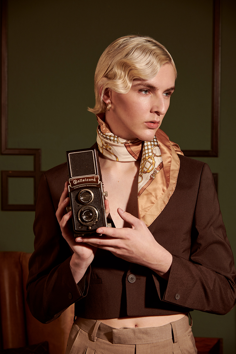 Yvonne Sophie Thöne is a German photographer focusing on retro-modern staged photography in fashion, portrait and boudoir. With the fashion editorial “Dandy” she is meandering artfully between a 1920s and a 2020s aesthetic, re-interpreting classical men’s fashion.