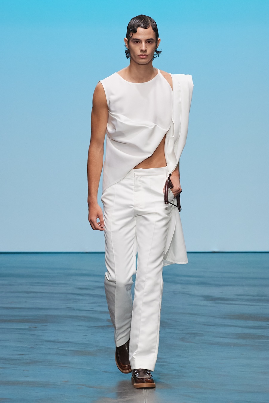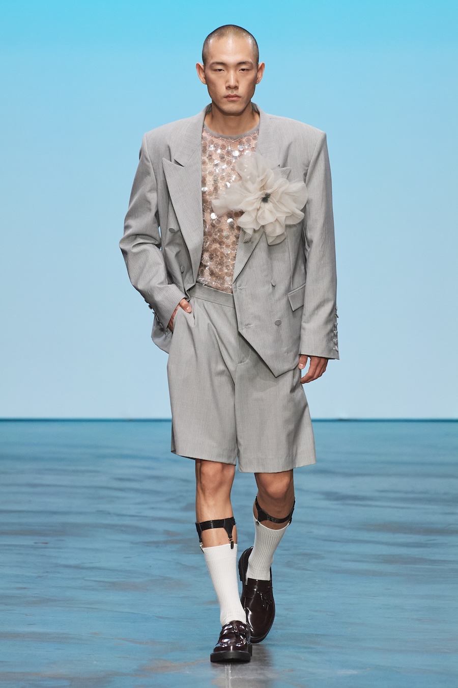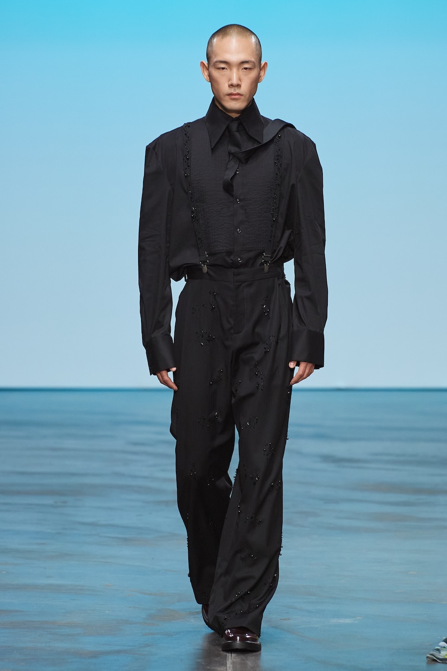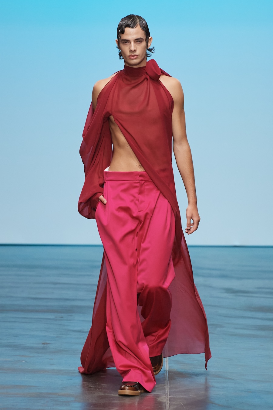 During Berlin Fashion Week, Danny Reinke showcased his Spring/Summer 2025 collection at the COLLECTIVE FOUR event. Titled “Stupid Cupid”, this Prêt-à-Couture collection is a tribute to the emotional turbulence of unrequited love. It’s a sartorial rollercoaster of feelings, featuring both women’s and men’s looks that explore the paradoxes of hopeless infatuation—when what is close seems distant, when desire ignites through rejection rather than extinguishes.