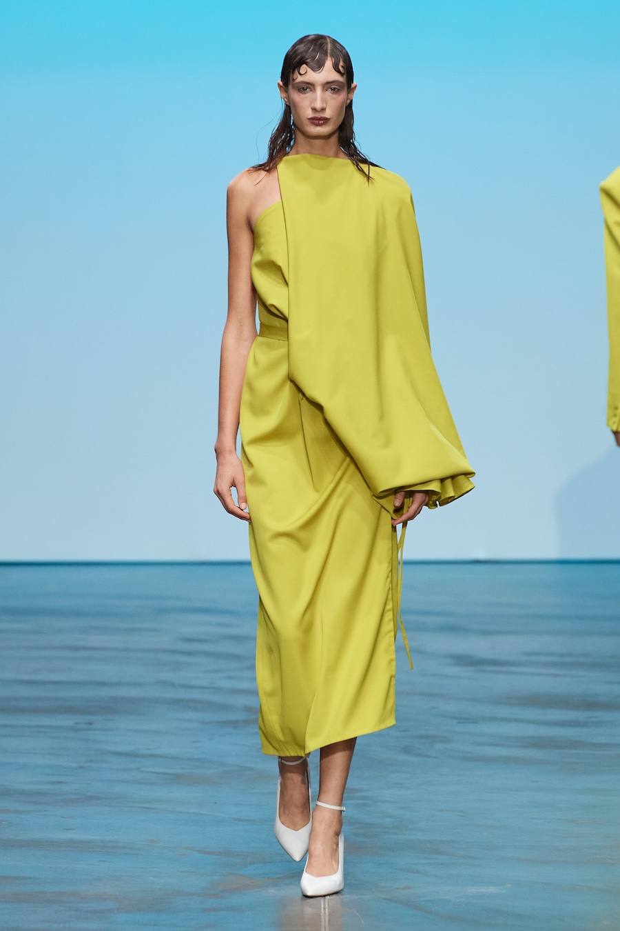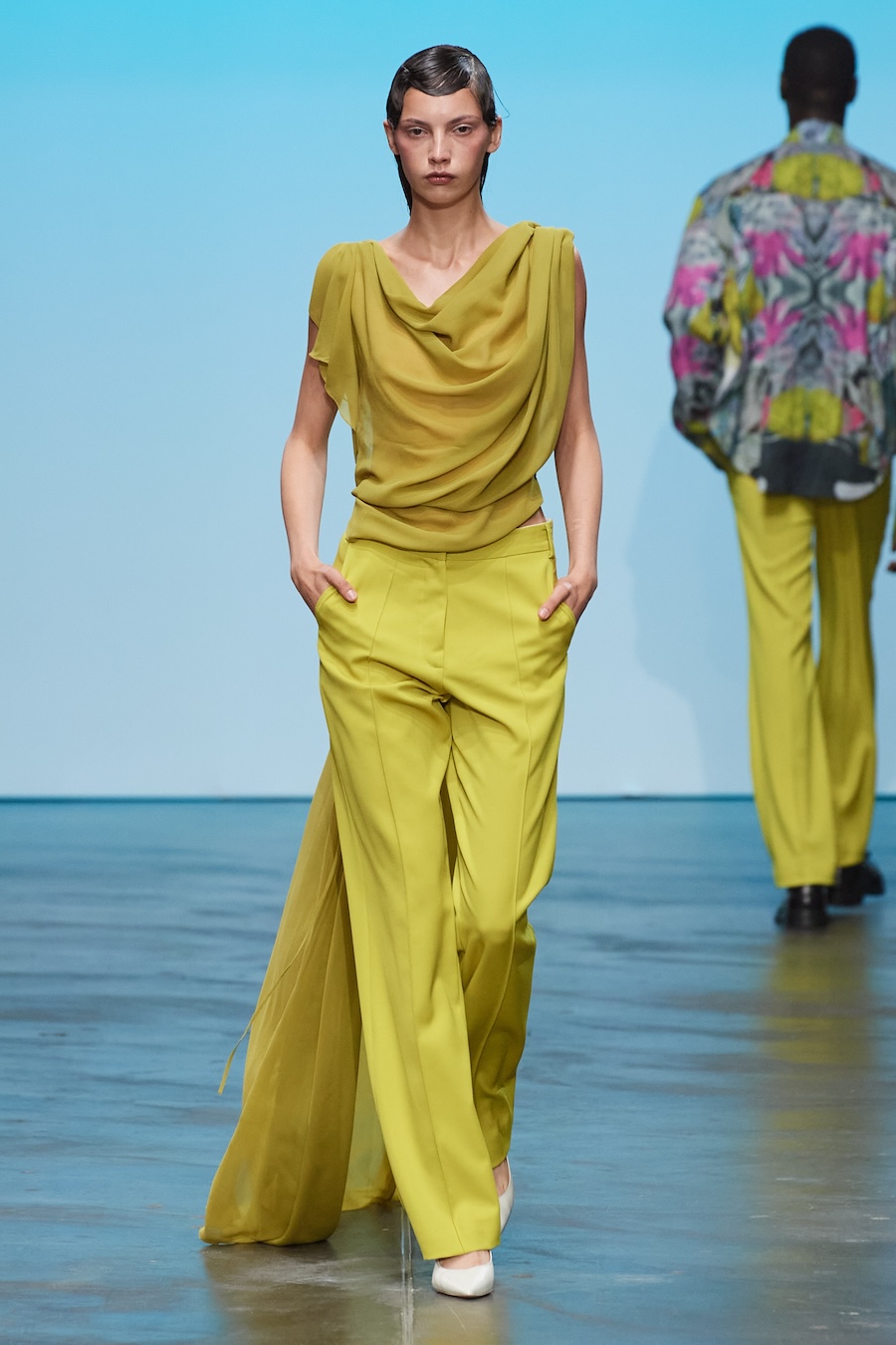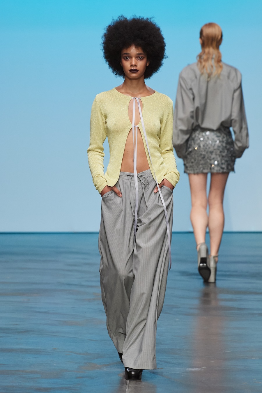 The emotional centrepiece of this SS25 collection is vibrant reds in various shades. When combined with grey, black, white, and lime green, this contrasting colour palette primarily features in heavy fabrics. Another central element is the high-quality corsets symbolizing the emptiness and constraint of heartache. As indicated by the collection’s title, further references to the 1950s are integral to the overall design.