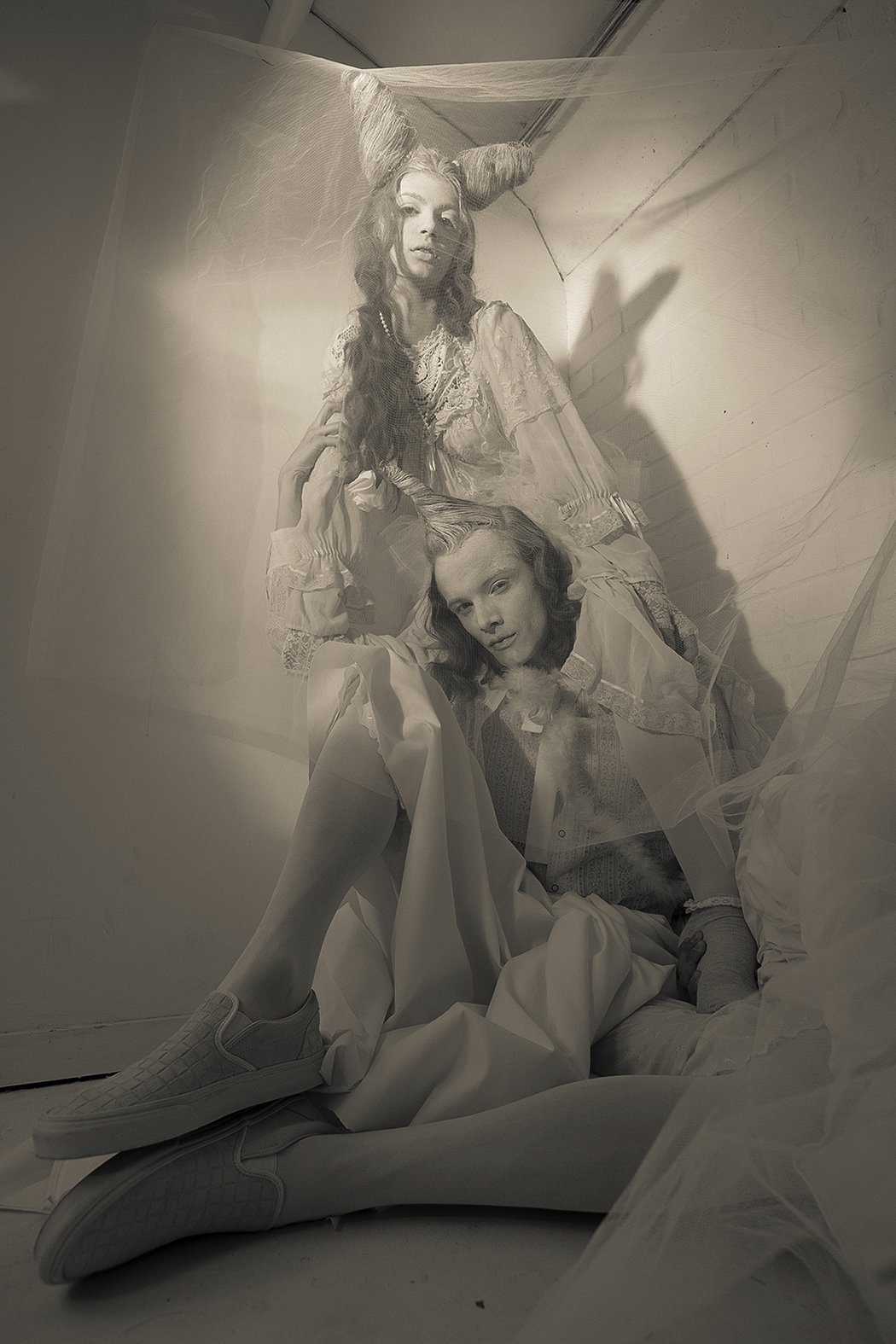 Kay lived amongst Rishikesh yoginis for several months in the worldwide famous Beatles Ashram. Kay Altamira is originally from Mexico, yet she has Lebanese, Luxembourgeoise and Spanish blood running through her veins, wit and fashion choices. Kay enjoys layers and the drama. Her meticulous work mainly focuses on finding emotional beauty in the weird and the bizarre. Shot by cinematographer Leon Pyszora, Dante’s Rooms is a piece of staged narrative which follows the development of a couple’s relationship, visualised through dramatised scenes from Dante’s Divine Comedy.