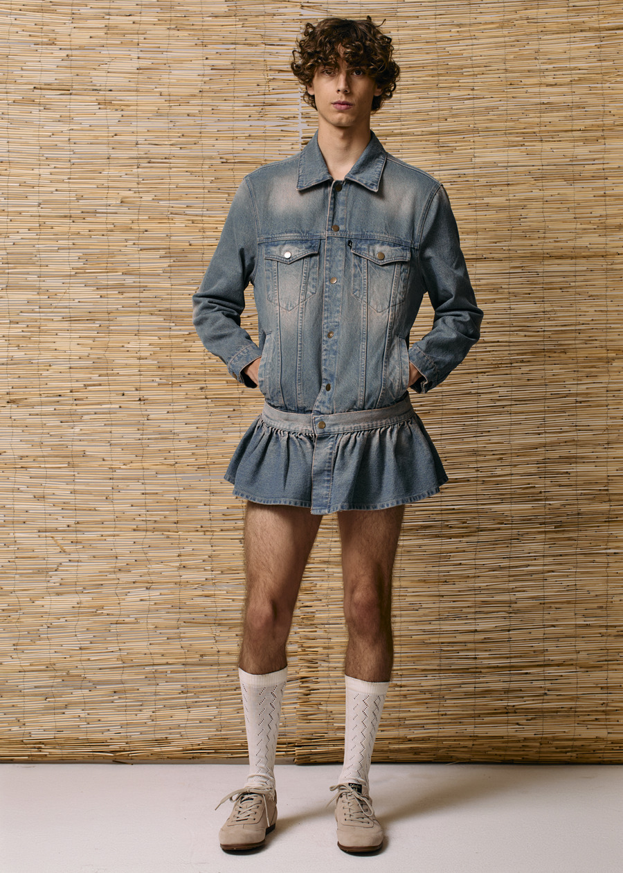Denim, a hallmark of the brand, makes a strong comeback, taking centre stage in this season’s lineup. Expect iconic pieces reimagined with meticulous details inspired by utilitarian aprons with pouch pockets, providing both functionality and flair.
