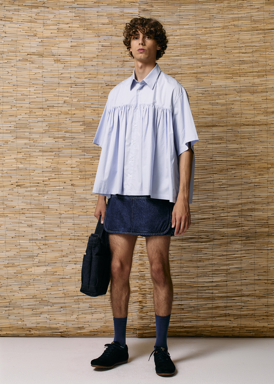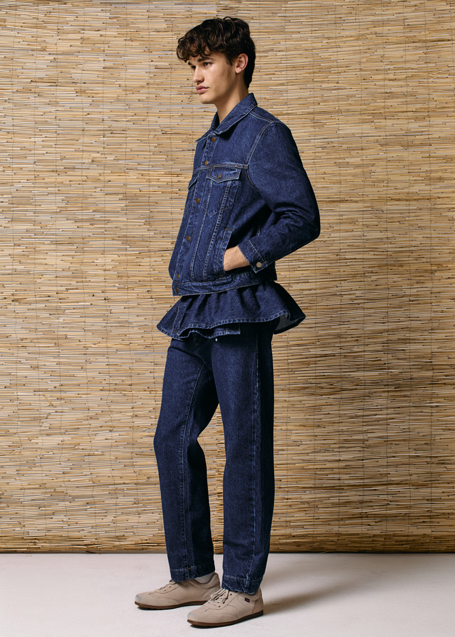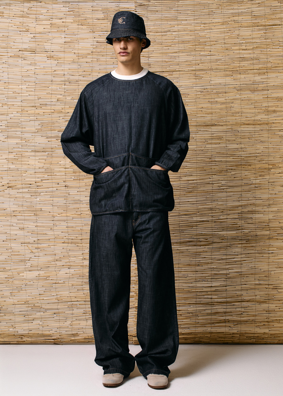 Denim, a hallmark of the brand, makes a strong comeback, taking centre stage in this season’s lineup. Expect iconic pieces reimagined with meticulous details inspired by utilitarian aprons with pouch pockets, providing both functionality and flair.