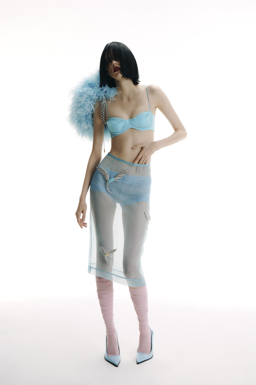 In an ethereal exploration of the avian world, David Koma’s Spring-Summer 2025 collection takes flight, infusing the essence of our feathered friends into haute couture. For this season, Koma blends the seductive allure of his signature style with playful provocations and charming innocence, crafting a realm where sensuality soars.