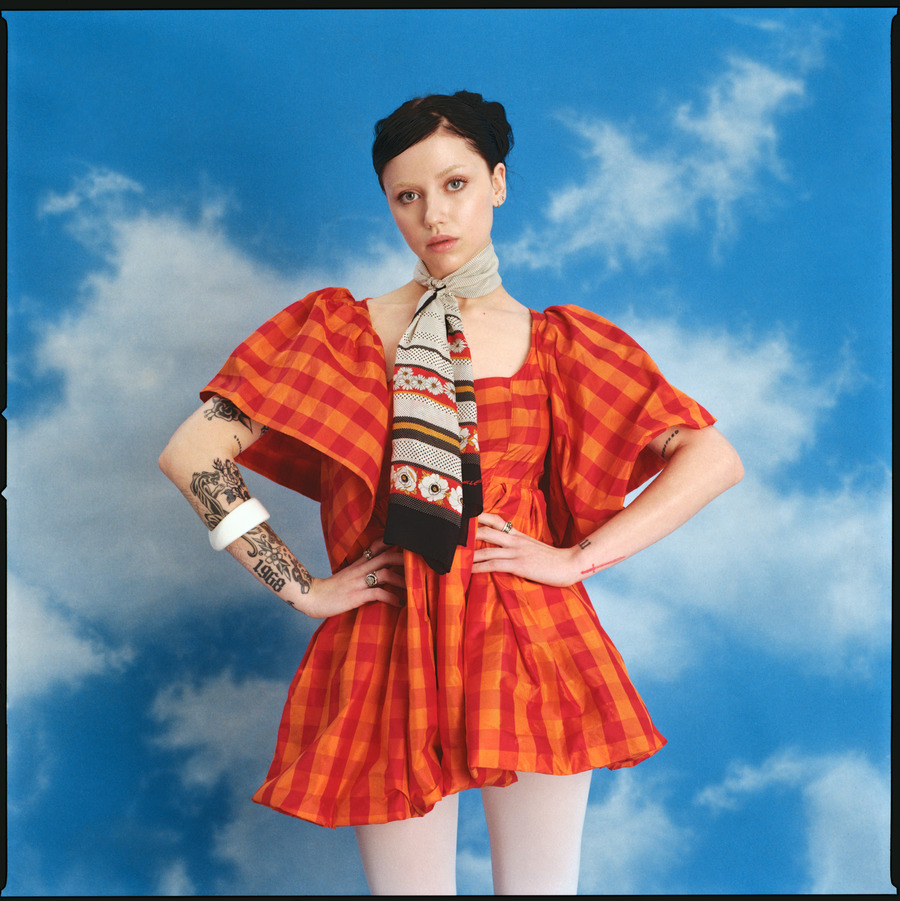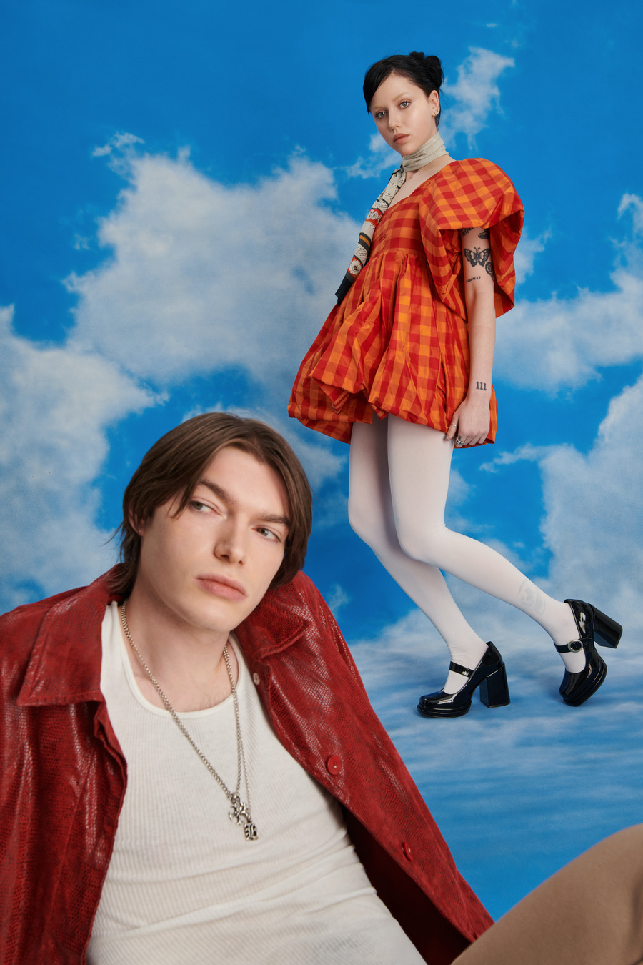 The film, especially that camera, forces me to work slower and more thoughtfully fill the frame. I am always looking for other creatives to collaborate with. Jennifer and I met via Instagram and had been trying to work together for a while. Annika and I connected through a mutual colleague. She loved the concept and my idea of using a cloud background. She created a style mood board that nodded to the modern fashion of the ’60s combined with now. When it all came together I felt like we had an Alice in Wonderland meets Harry Potter sort of vibe that came to life. Aris, Ayelen and Brendan are all represented by Misfit models, run by Lauren Rutledge in NY. Her people never disappoint! Aside from being stunners, her roster is full of models with personality.”