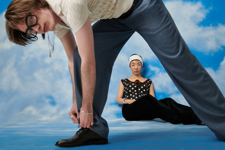 A KALTBLUT exclusive. Photography by Jena Cumbo. Styling by Annika Morrison. Hair and Makeup by Jennifer Leanne Espensen. The models are Aris Jeffers, Ayelen Song and Brendan Doyle. Fashion Brands used are Brooks Brothers, Twiggy Moore, Rue Sophie, Aknavas, Lets Frans, Alexander Wang, Adidas x Wales Boner, Miu Miu, Burberry, Baum und Pferdgarten, Royal Bones, Edwin, No Label, Showroom Seven, Florsheim, Andy Wolfe, Steve Madden, Jeffery Campbell, Jean Paul Gaultier, Thierry Lasry for Midnight Rodeo, Moochi, Music Legs, Hanes, Levis, Vintage via Le Grand Strip.