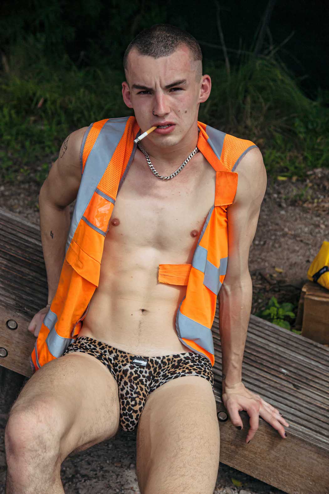 Izzac wears Vivienne Westwood, Dr Martens, Tommy Hilfiger, Nike, FUBU, Burberry, Umbro, Wrangler, Bruno Banani, Gucci, Garofali.