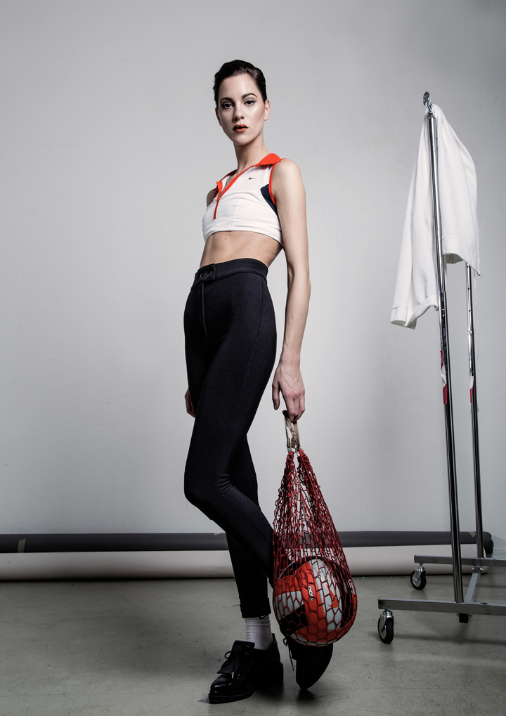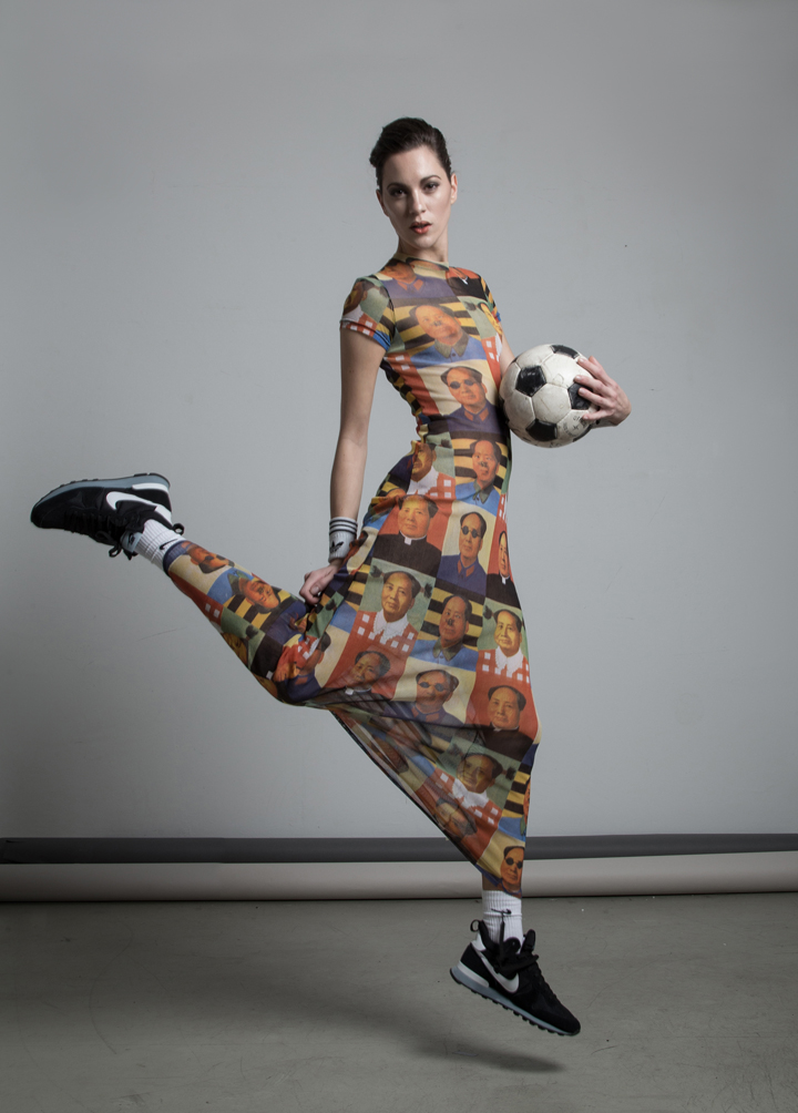 A KALTBLUT exclusive womenswear editorial! Photography and concept by Berlin based Lucio Aru and Franco Erre. Model is Maja M @ Pearl Model Management. Maja is wearing vintage sport pieces are from Nike and Levi’s. Black blucher with fringes from Zara, a Warhol Mao Tse print dress original from the 1990’s, stretch sport leggins by American Apparel, floral carved sandals by MIU MIU. Styling by Inga Kusche. Hair and make up by Cindy Kaczmarczyk.