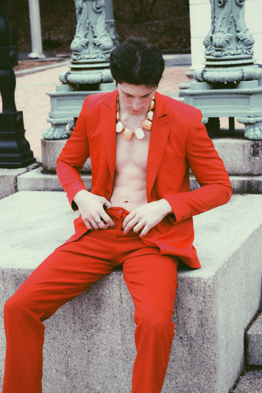 A KALTBLUT exclusive. Photography by Elys Berroteran. The model is Logan Naile. “Between Prospect Park in Brooklyn New York and the studio, Logan is captured in this story that speaks of memories and internal realities that we are not sure happened, between the darkness and the sublime—using outfits that reflect this reality of dark and light.”