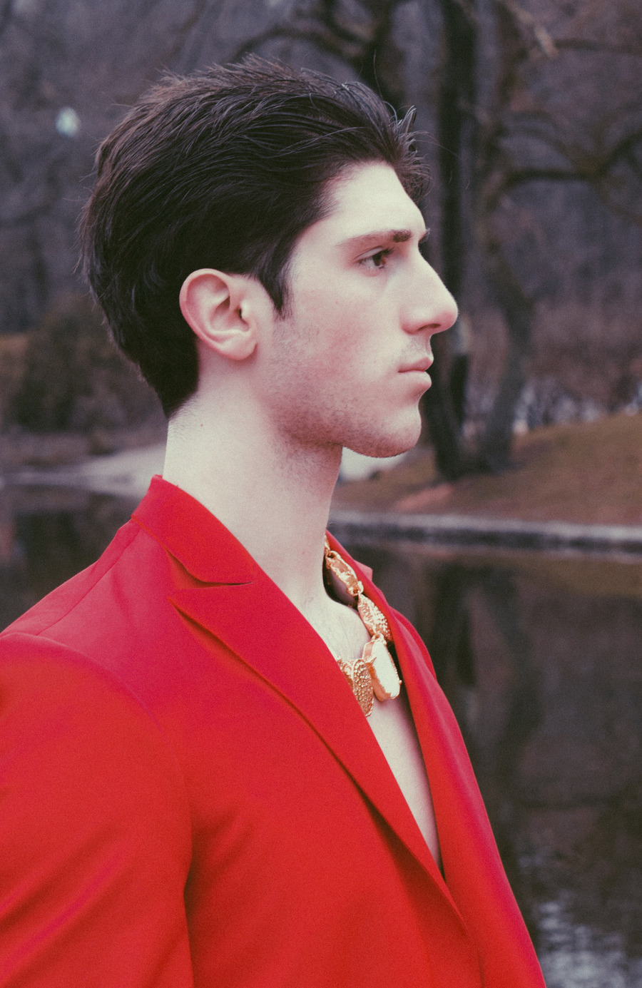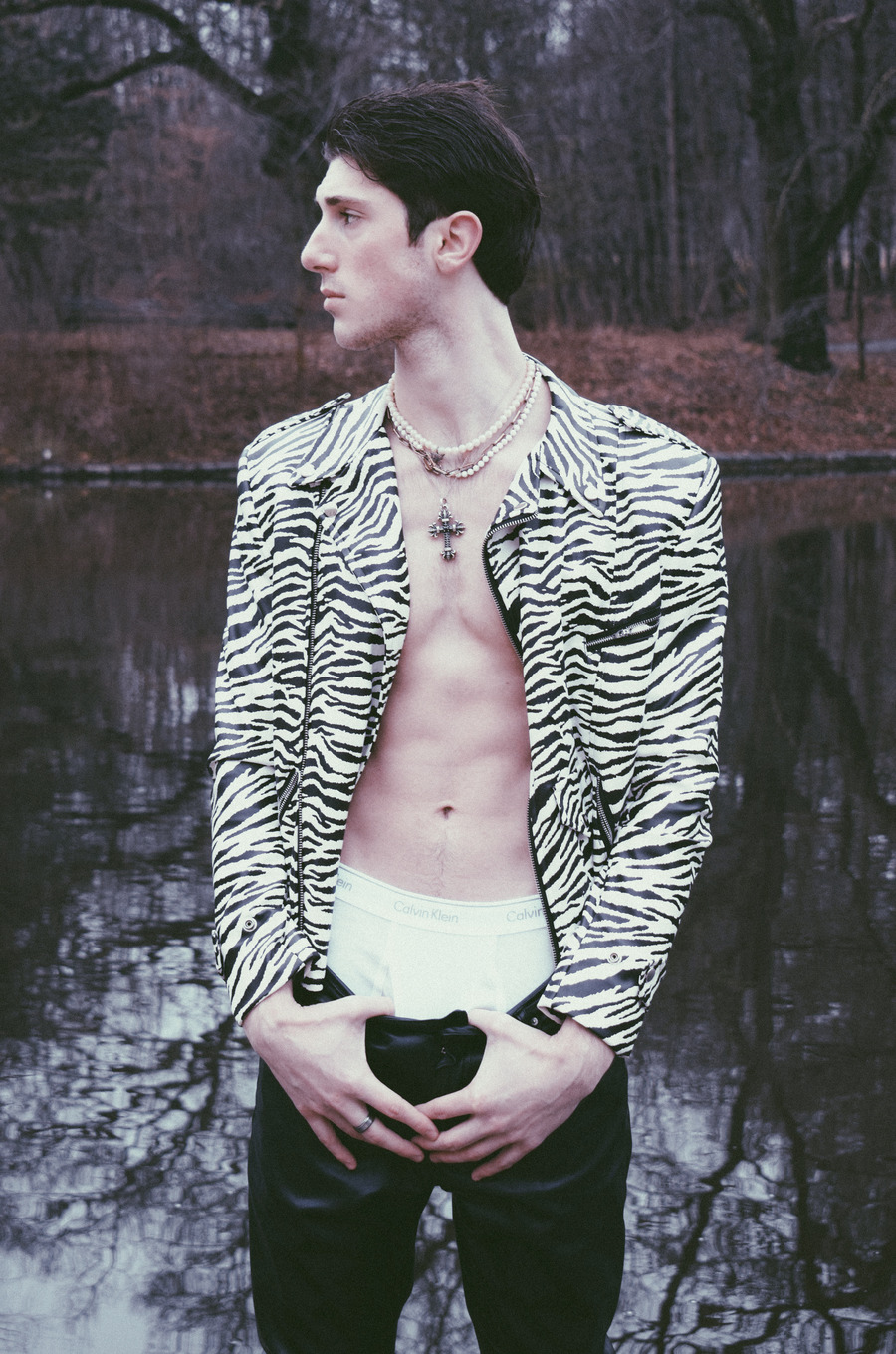 A KALTBLUT exclusive. Photography by Elys Berroteran. The model is Logan Naile. “Between Prospect Park in Brooklyn New York and the studio, Logan is captured in this story that speaks of memories and internal realities that we are not sure happened, between the darkness and the sublime—using outfits that reflect this reality of dark and light.”