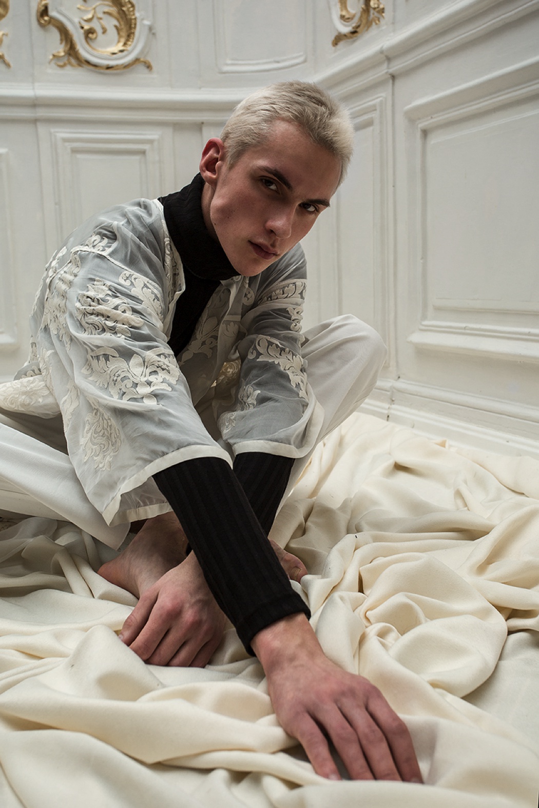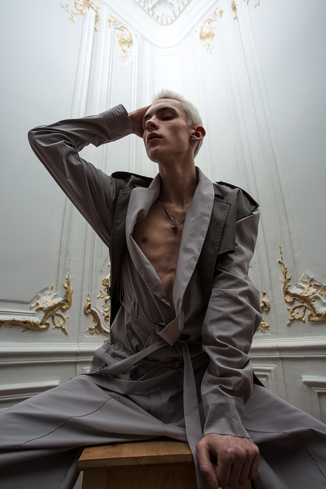 A KALTBLUT exclusive menswear editorial. Photography by Aleksandra Sycheva. Model is Demid signed at Agency Twig model management. Styled by Tatiana Deryugina. Location Bedford Studio.