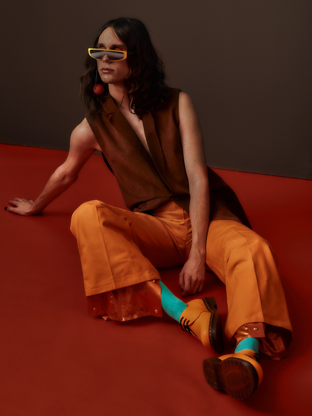 A KALTBLUT exclusive. Photography by Maximilian Mouson. Model is Marco Hunger. Hair and Make up by Fabienne Hoppe. Styling by Nico Sutor using Kultura & Sport, Adriane Lila Fecke, Essentiel Antwerp, Nico Sutor, Rani Bageria, And Other Stories, Christine Sattler, Melis Yildiz, Florian Máthé, Hadas Hinkis, MM6 by Maison Margiela, Adidas, Teddy Glickman, Dr. Martens, ic! berlin x David Tomaszewski, Pantone, Wunderkind, Jean Paul Gaultier, Tassel Tales, Versace.
