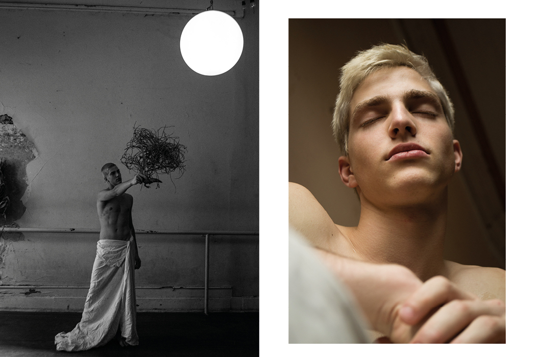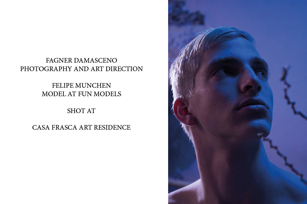 A KALTBLUT exclusive series from Brazil. Starring male model Felipe Munchen, a promissor young new face from Rio Grande do Sul. He is signed to at Fun Models. Photography and Art Direction by Fagner Damasceno. A Fashion Photographer and Visual Artist based in Porto Alegre, a city in southern Brazil. Thanks to Casa Frasca, Art Residence, for Hosting the shooting. “Lately I’ve been working on various photographic series, named “Boys from Here”, mainly about the deconstruction of the concept centred in the male imagery. With my work, I try to see and show a different view over the masculinity, showing how soft, delicate guys could appear, denying any social pattern that how men should look like. I like the models I use to choose to work with to have a certain look, which could be super feminine, androgynous or even studs in feminine acting. I’m also currently working on a new exhibition named “Fragile Male” which will bring to light this moment of rethinking the masculinity and how the “male” concept have had influenced and measured our social behavior in oppressive and toxic ways – The complete series could be seen in my fb page.” says Fagner Damasceno.