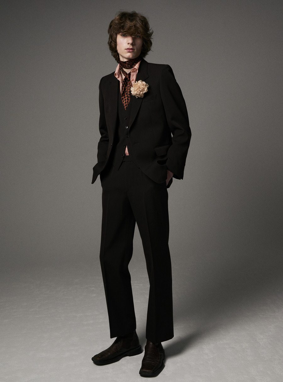Brands used are Dries van Noten, Paul Smith, Maison Margiela, Levi’s, Van Gils, Rika Studios, H&M, Majestic, Converse, Ray-Ban, Karl Lagerfeld