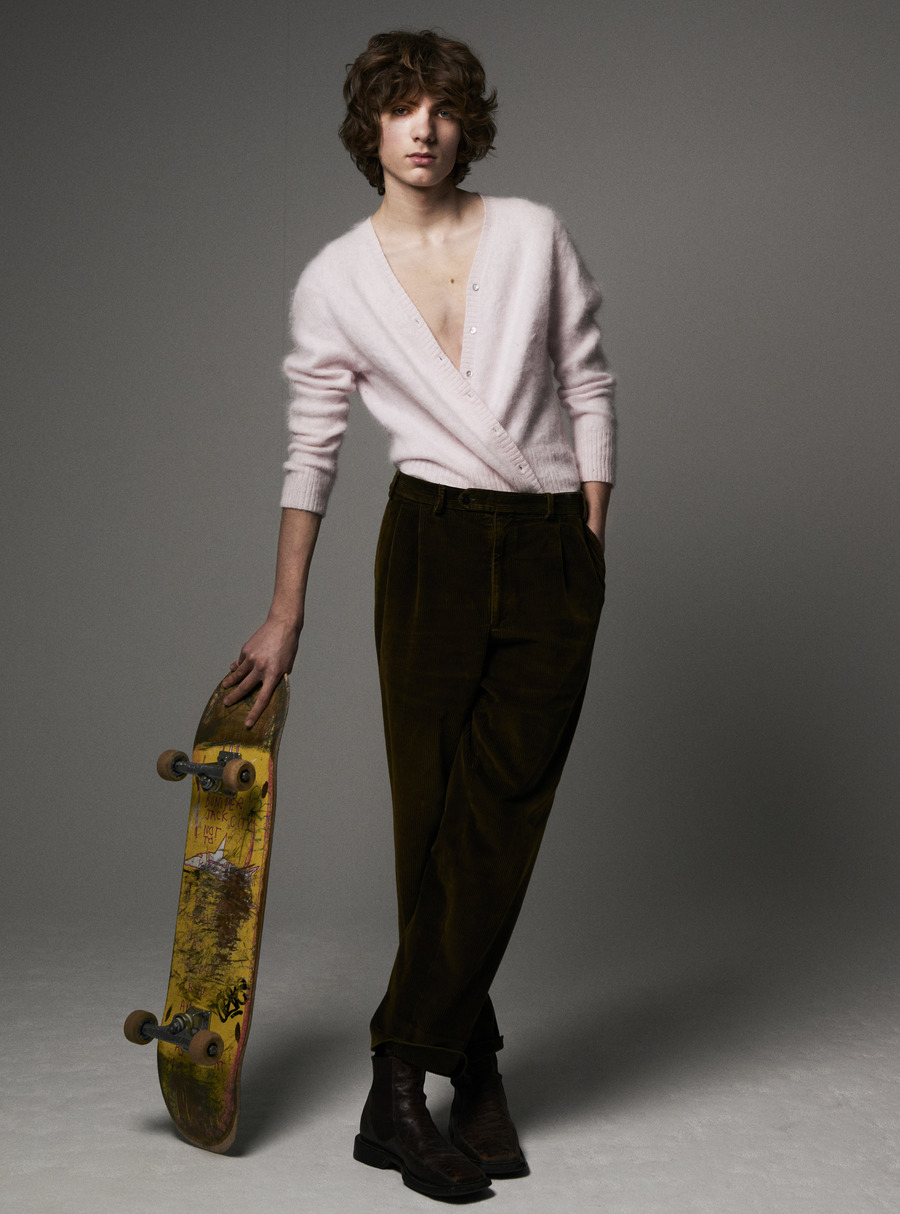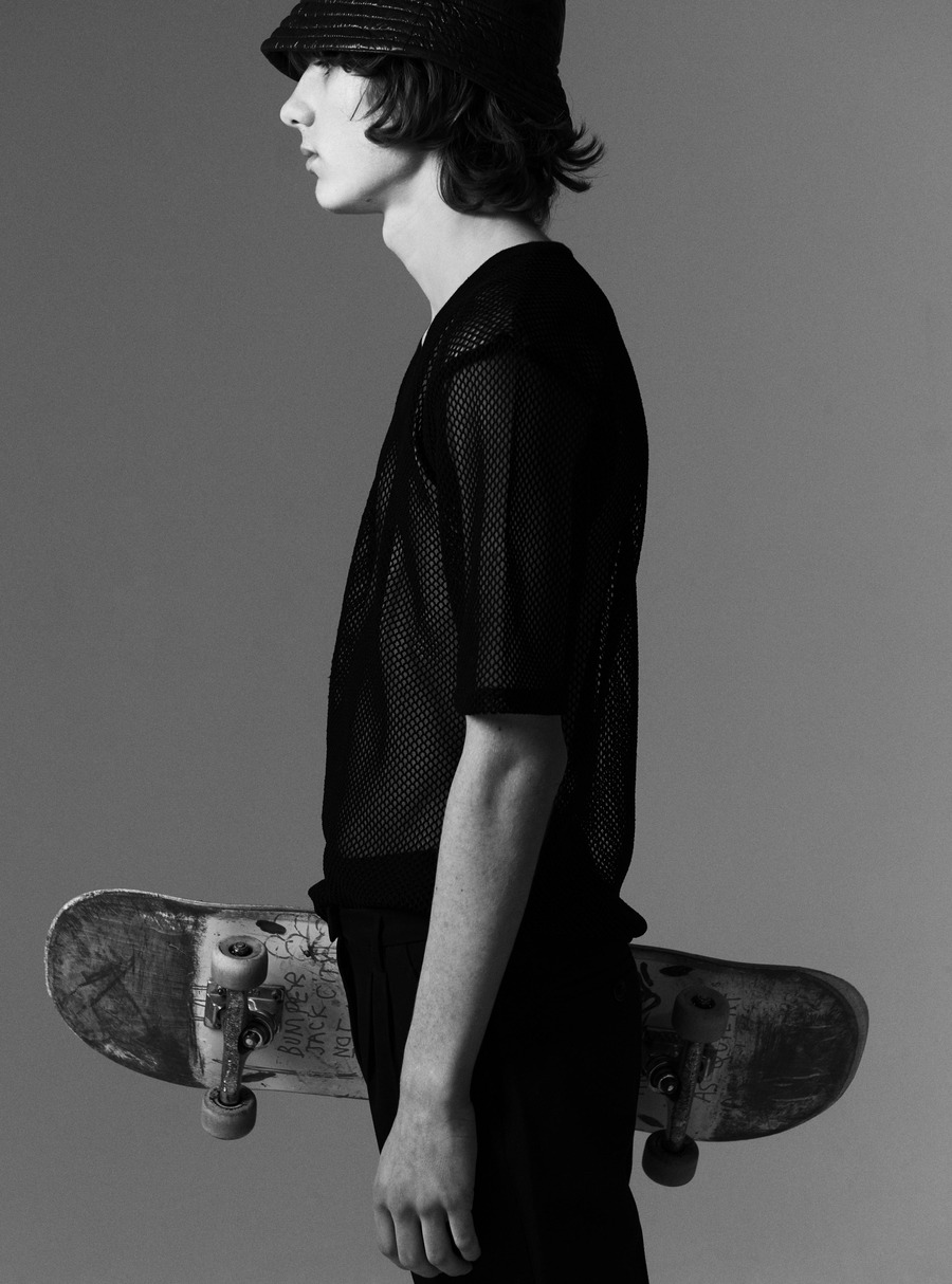 The inspiration behind the shoot lies in a blend of high fashion and raw authenticity. Job van Deursen, bridges skate culture and haute couture, with the styling merging modern and vintage pieces. Job’s skateboard becomes an extension of his style. Together, they create a visual tapestry where new trends meet recycled fashion.