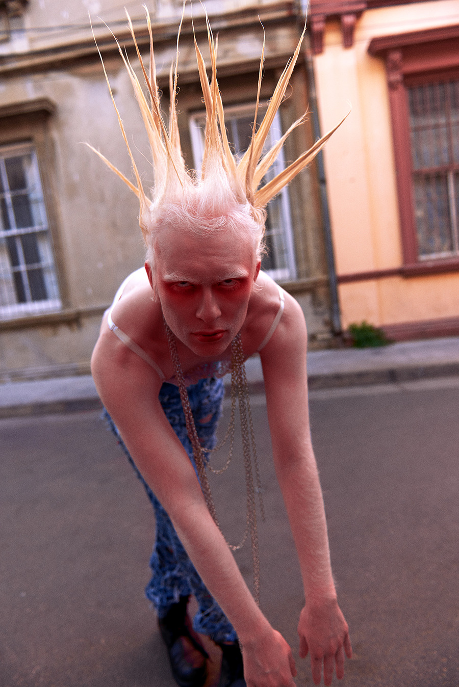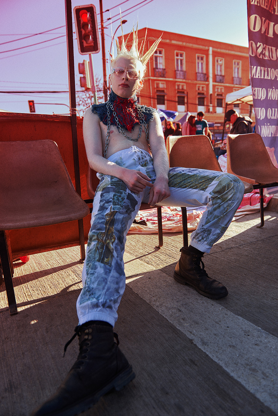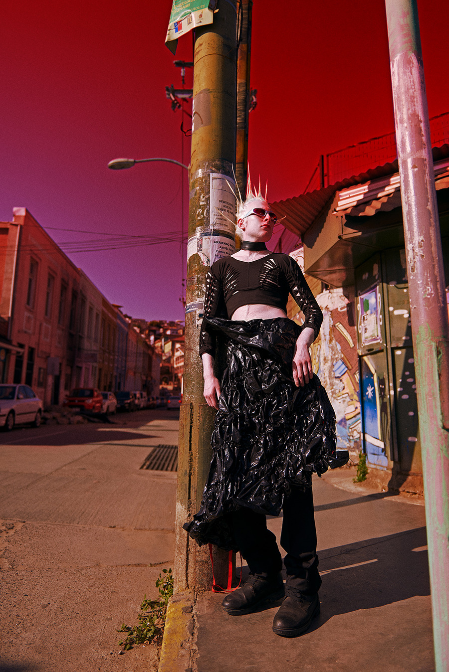 This editorial “Devil Boy” originated in Valparaiso City Chile is inspired by the emerging neo-punk of the area, which mixes textile reuse and the disgust of belonging to a consumer society. An element of activism and resistance collaborating with local emerging textile upcycling brands.