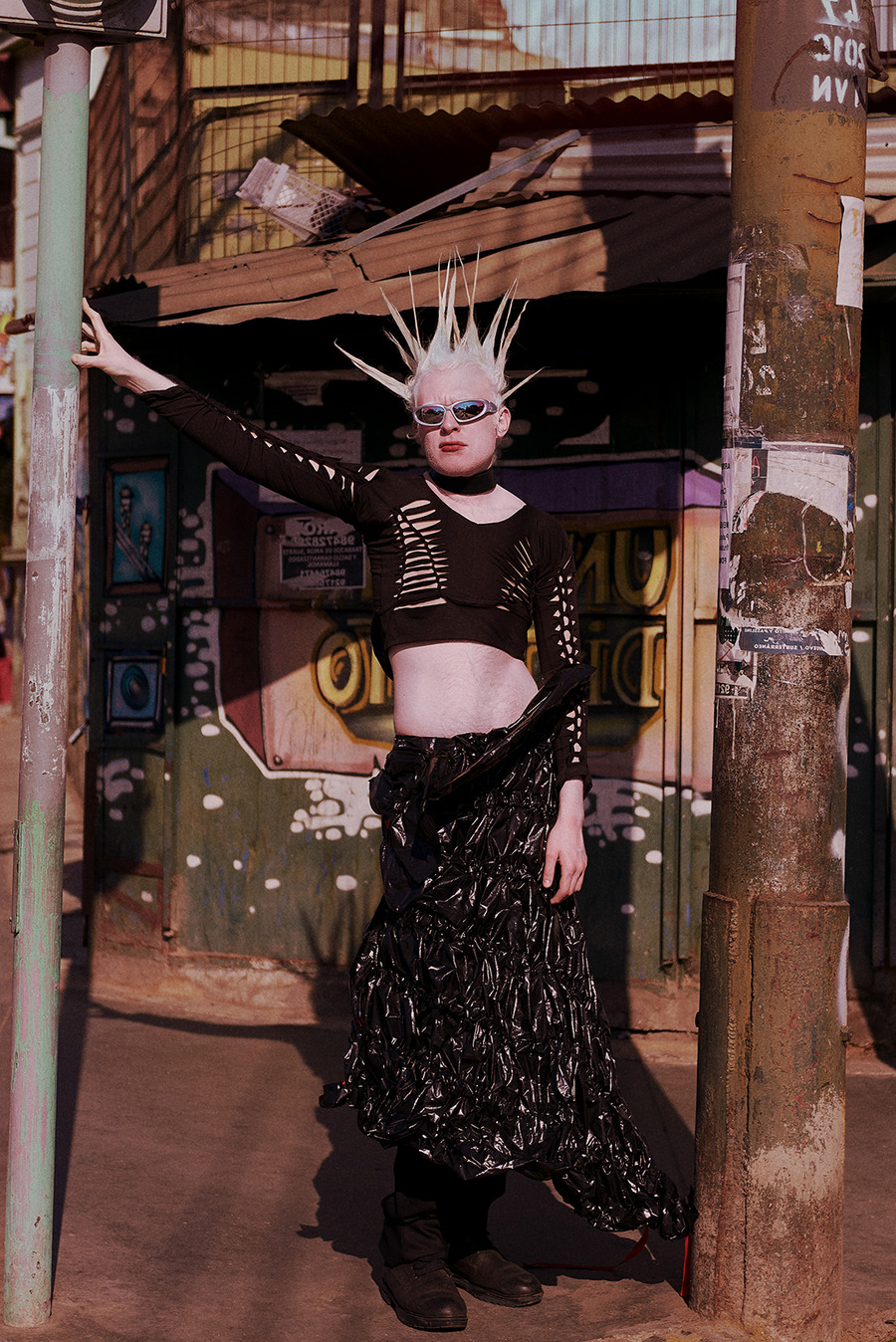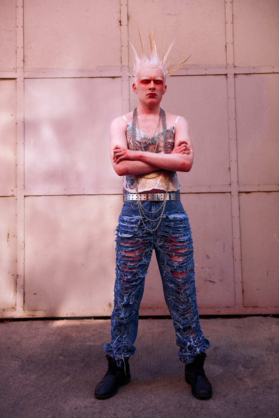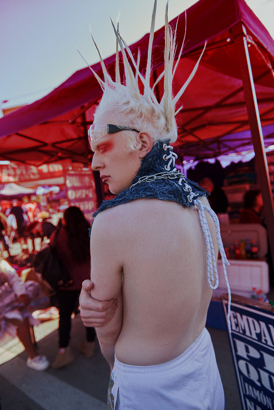 This editorial “Devil Boy” originated in Valparaiso City Chile is inspired by the emerging neo-punk of the area, which mixes textile reuse and the disgust of belonging to a consumer society. An element of activism and resistance collaborating with local emerging textile upcycling brands.