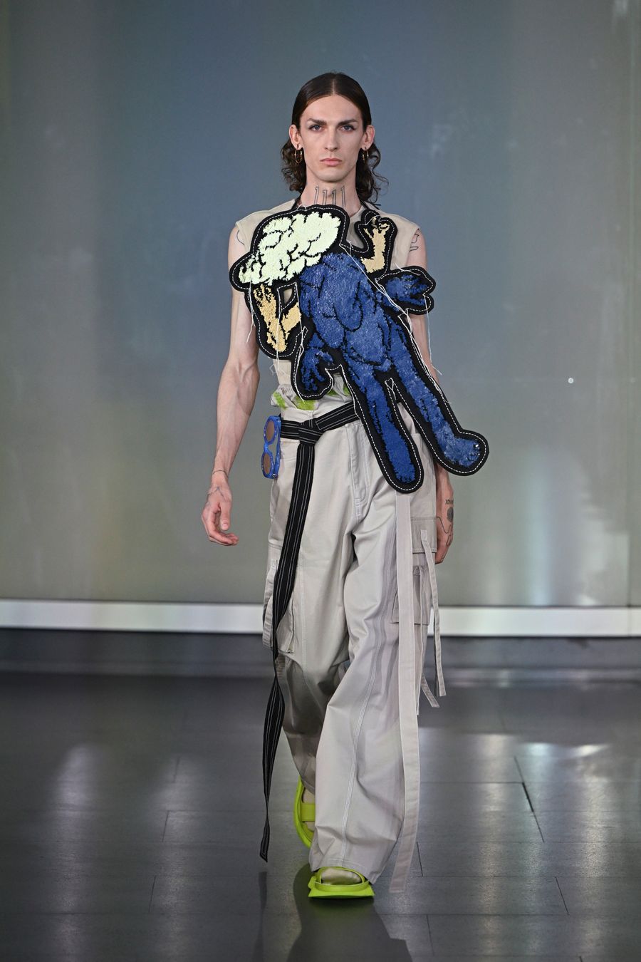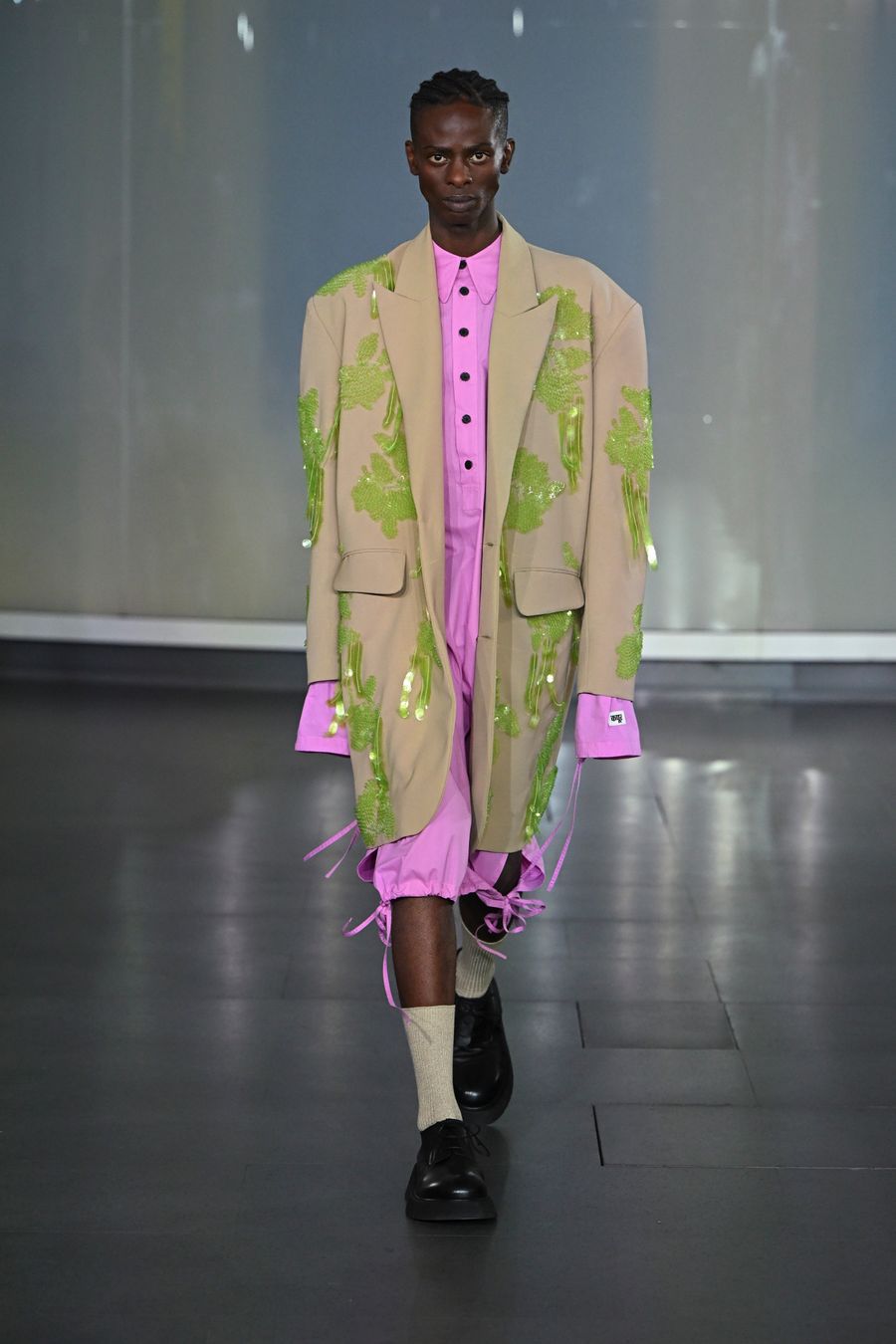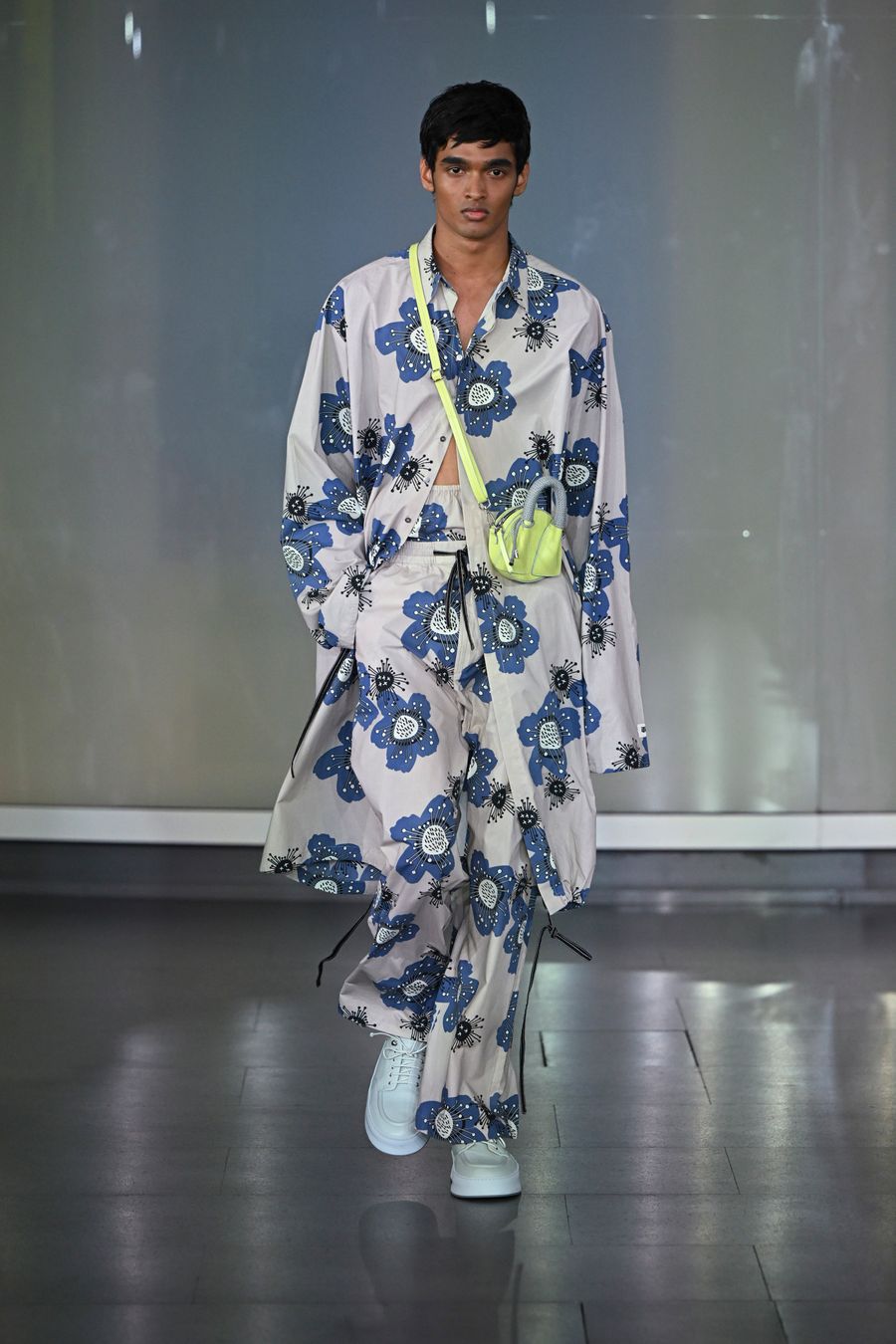 For Spring/Summer 23, Dhruv Kapoor targets a raw mix of emotions through mesmerising colours, unconventional silhouettes, abstract prints and multi-layered surfaces. Unusual pairings of giant and petite, old and new, maximal and minimal come together seamlessly to define that comfort is key but not without style. A utilitarian vibe with soft structures straddle elements of couture and street – from giant tracksuits and squared tailoring to hand-crafted embroideries by skilled artisans sitting on fantastical silhouettes.
