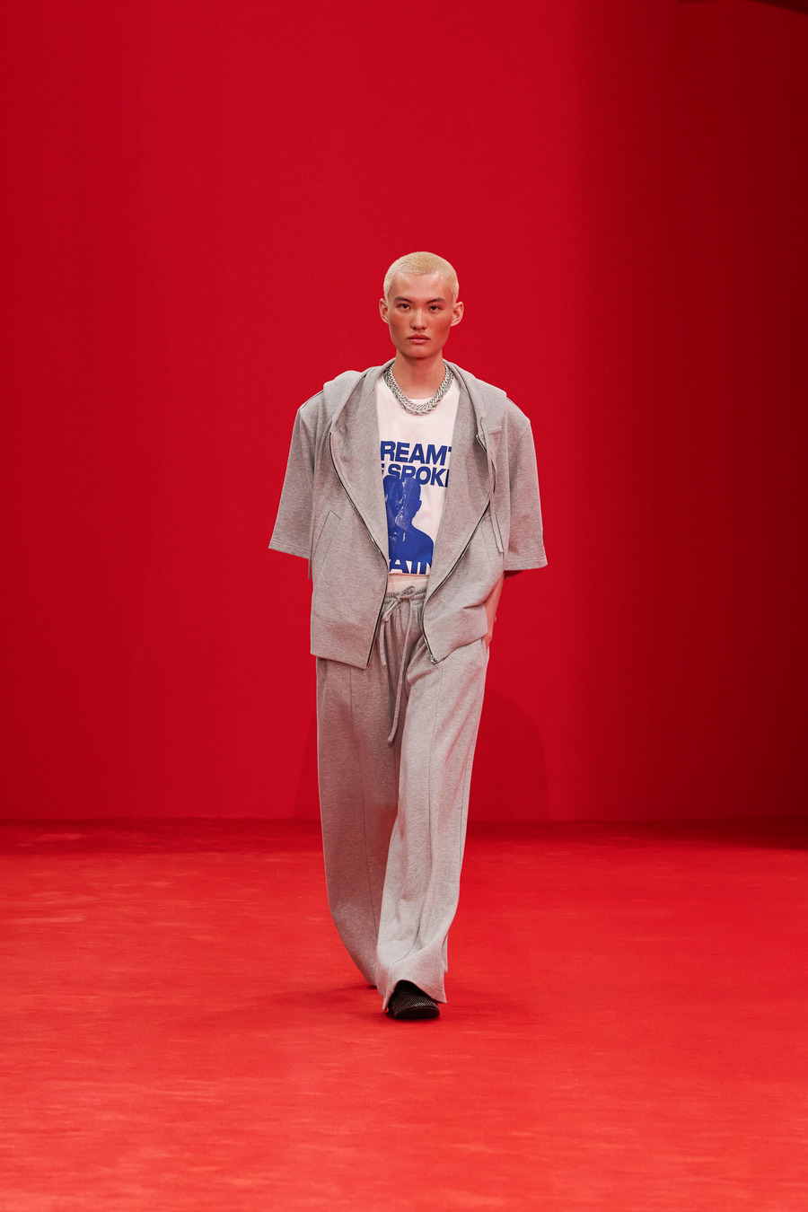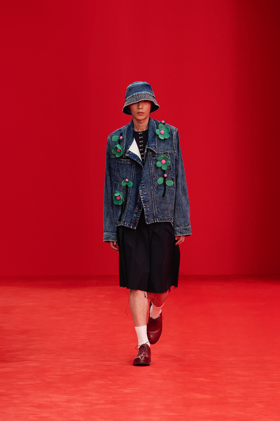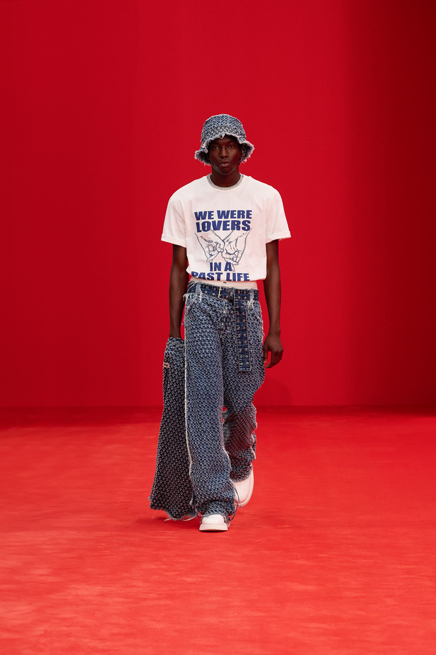 The collection is an eclectic medley of borrowed dad shoes, oversized sibling’s pieces, slouchy ’90s fit, flared jeans that pop with nostalgia, vintage-hued summer jorts, and tailored jackets made from cotton sheets. The interplay of past and present is painted with delightful contrasts—giant vs. petite, raw vs. tailored, sophisticated vs. rugged—creating an undercurrent of nostalgic romance. Kapoor’s work evolves childlike rebellion into a mature understanding of self and surroundings, reminding us that a blend of past influences and future aspirations constantly shapes our identities.