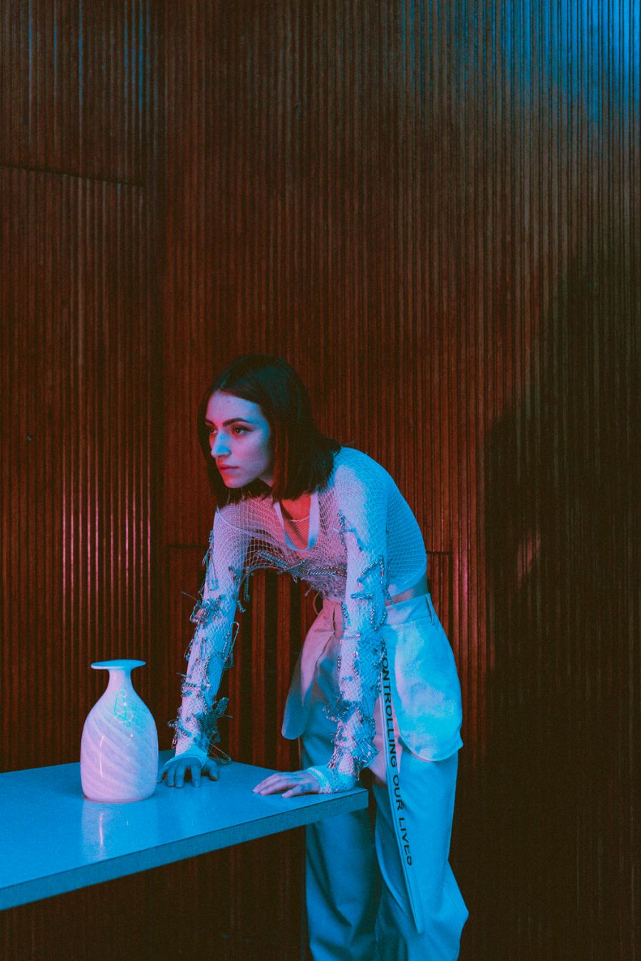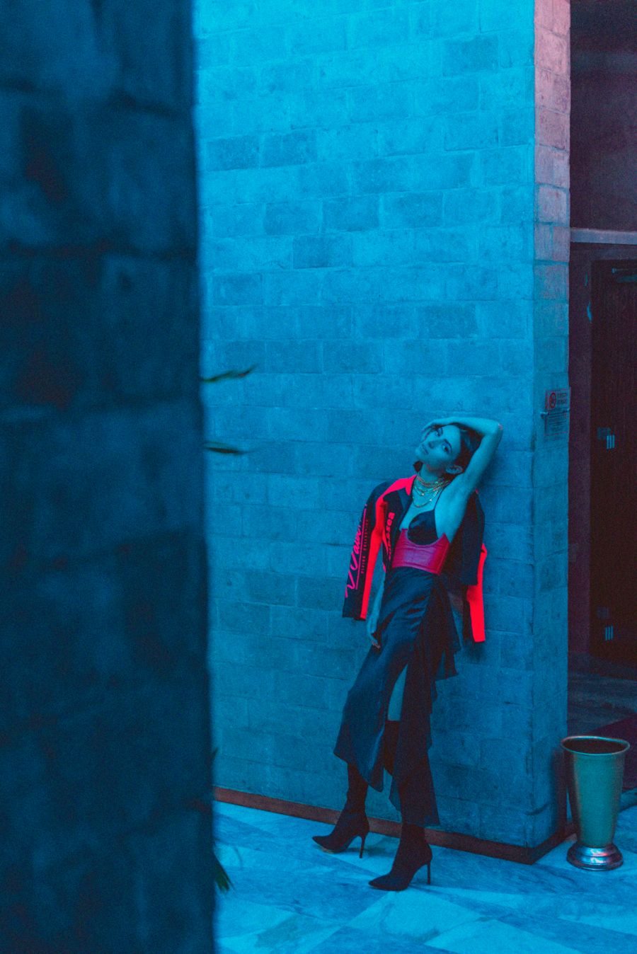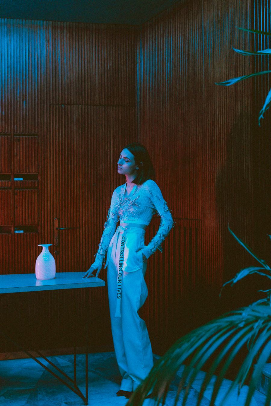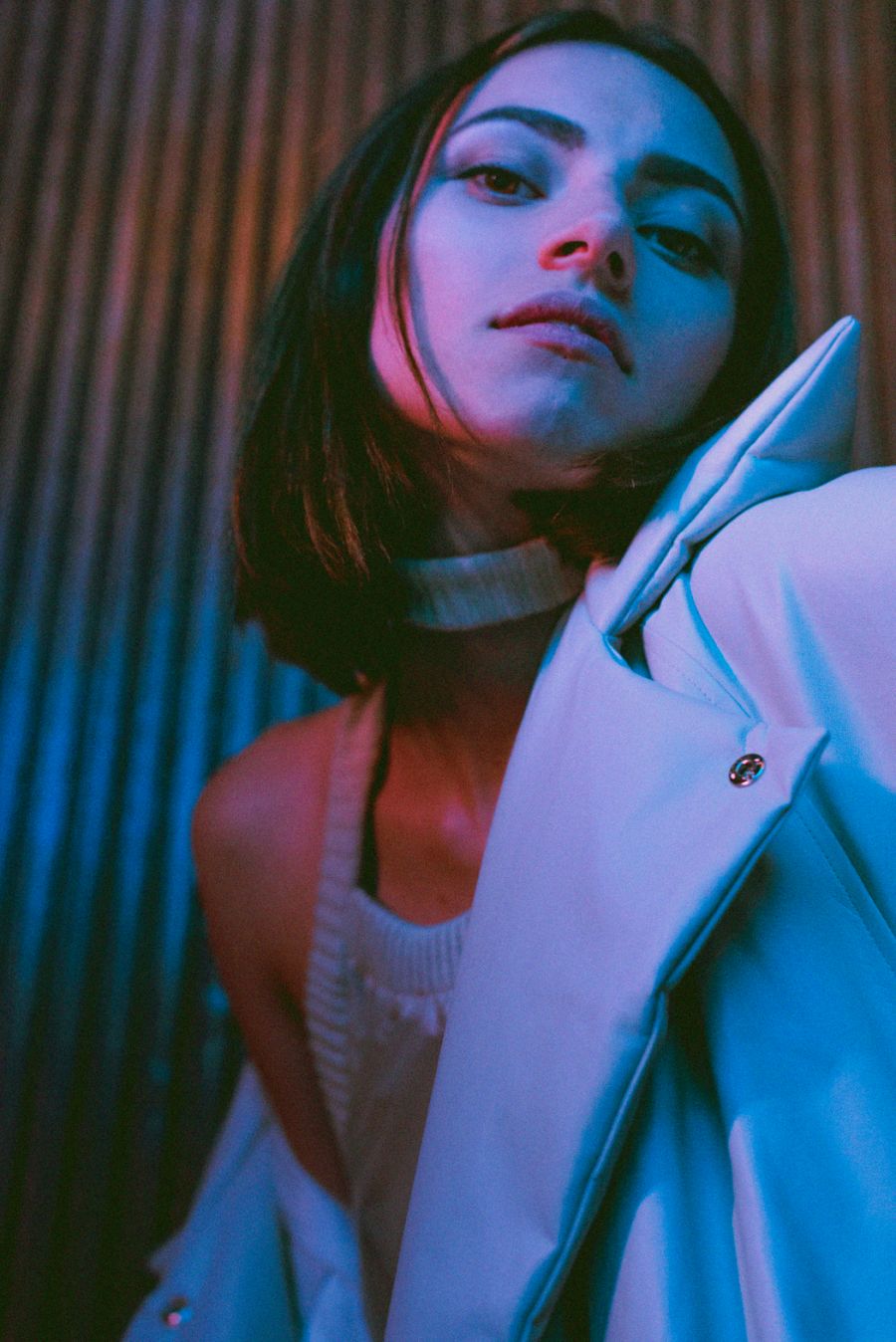 A KALTBLUT exclusive womenswear editorial. Photography by Chiara Rigato. Model is Anca Carp. Styling by Filippo Sandini. “I’m a 22 years old content creator and photographer practicing in fine arts and fashion fields. Diamond Veins is a womenswear fashion editorial born by the collaboration of three freelance creatives working in Padua to create a fascinating serie of photos made of seductive-disturbing lights meeting the red wood of the location, making everything looking like a thriller.” says the photographer.