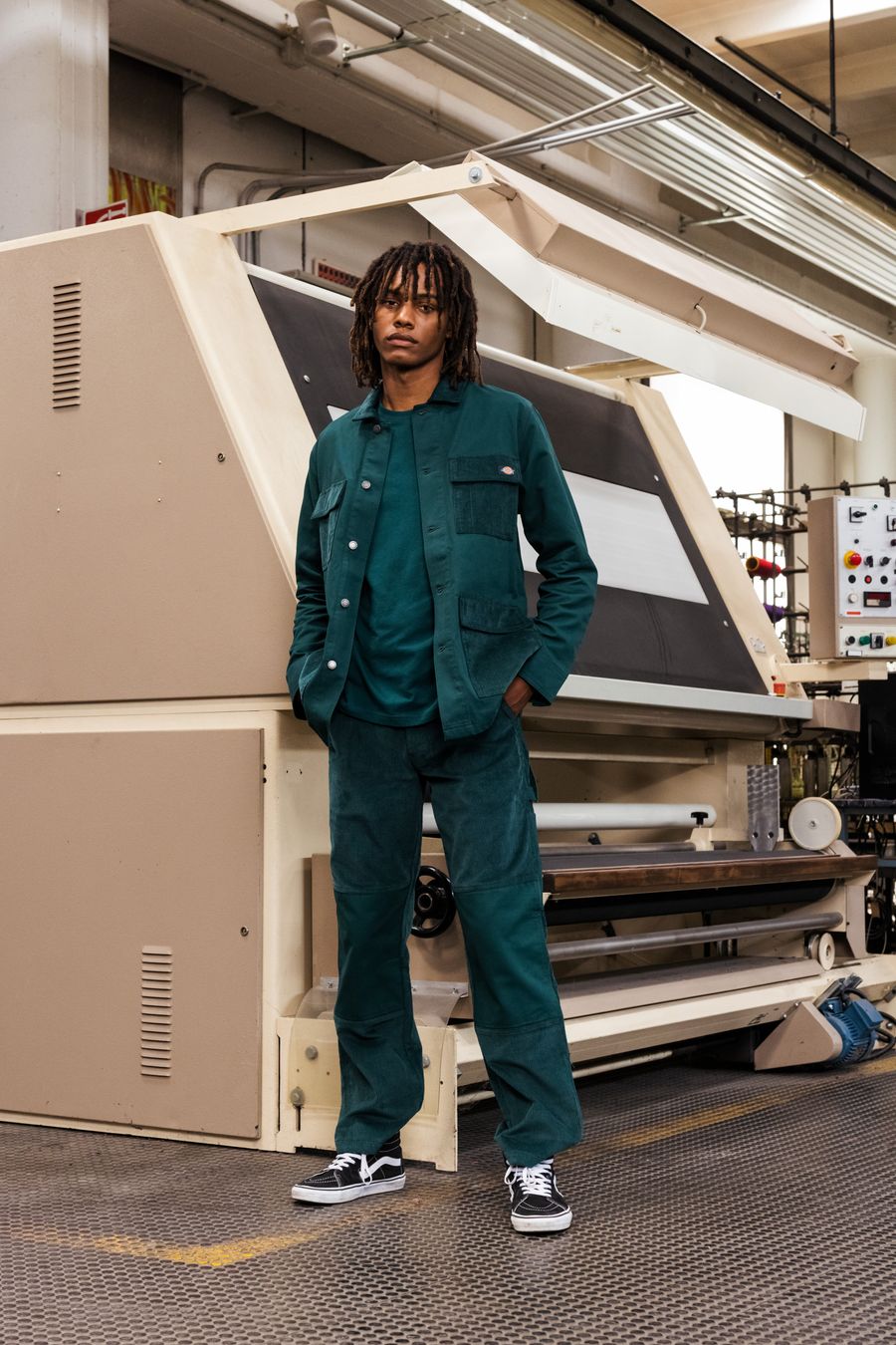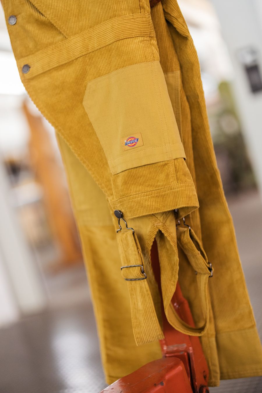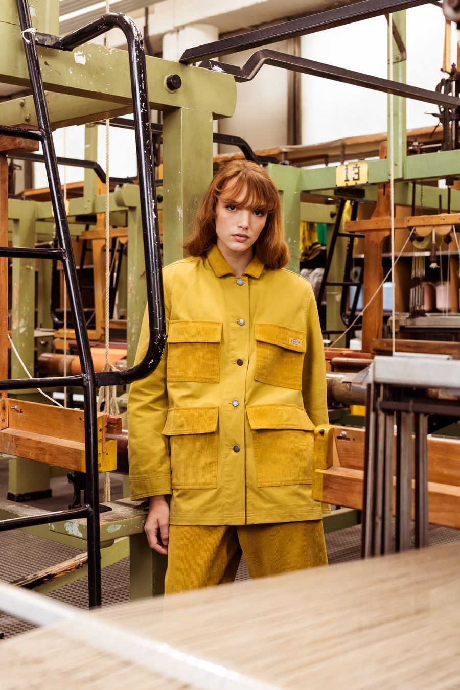 Based on the trends of the 90s, the main items in the collection include dungarees, overalls, coveralls, modified 874 trousers and work jackets. All parts have a tone-on-tone color scheme, with contrasting fabrics such as hard-wearing cotton fabric and cord, as well as patch details in paisley patterns, as a visual highlight.