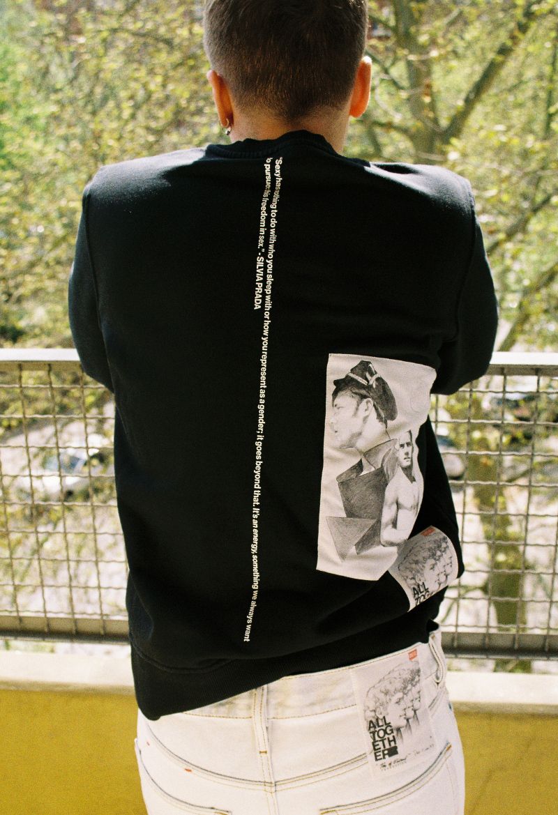To give further visibility to this legacy, the designer created a special Pride 2022 capsule collection with the artwork of some of the same artists of the exhibition that have been curated by the Foundation. The capsule has been lensed by Spyros Rennt, showcasing Berlin, Germany’s queer scene—which, just 70 years ago, was still persecuted. This battle is still to be fought in so many parts of our world.