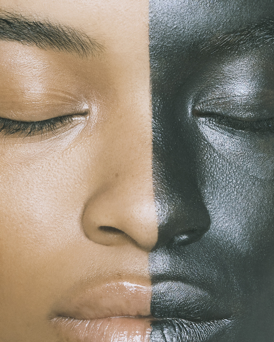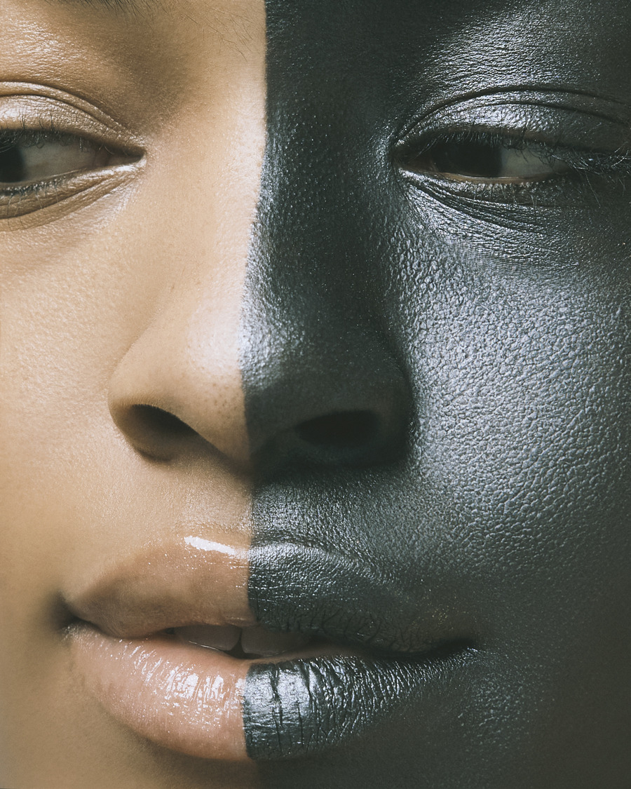 A KALTBLUT exclusive. Photography by Anna Cottis. Makeup by Simonetta Tsapanou. The models are Alix and Liza Edward. “Exploring AI is like diving into a world of possibilities, where we try to understand and make the most of artificial intelligence’s capabilities. It’s a bit like navigating through a maze of codes and information, aiming to grasp its full potential. Just as using the right words is crucial in effective communication, knowing how to work with AI is essential to bringing our ideas to life. In our beauty shoot, we aimed to bring to life the captivating concepts we came up with through our interactions with AI.”