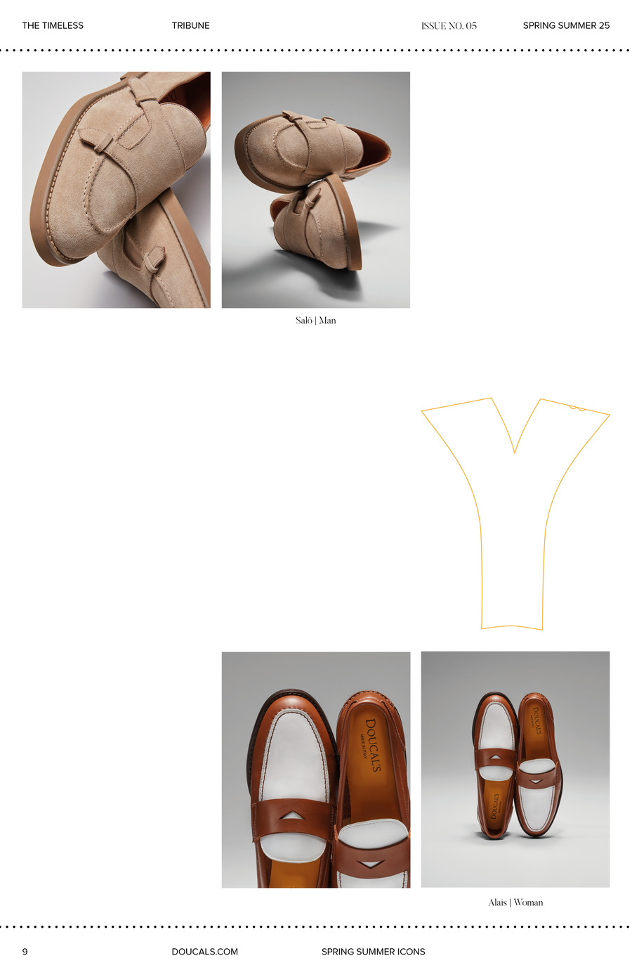 The Spring/Summer 2025 collection from Doucal’s draws from Mediterranean influences, symbolizing authentic and timeless beauty. This metaphorical journey celebrates Italian craftsmanship while championing a philosophy of conscious, understated elegance, effectively translating emotions and tradition into refined contemporary designs.