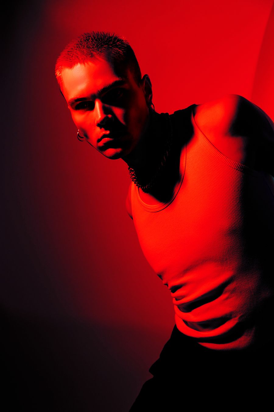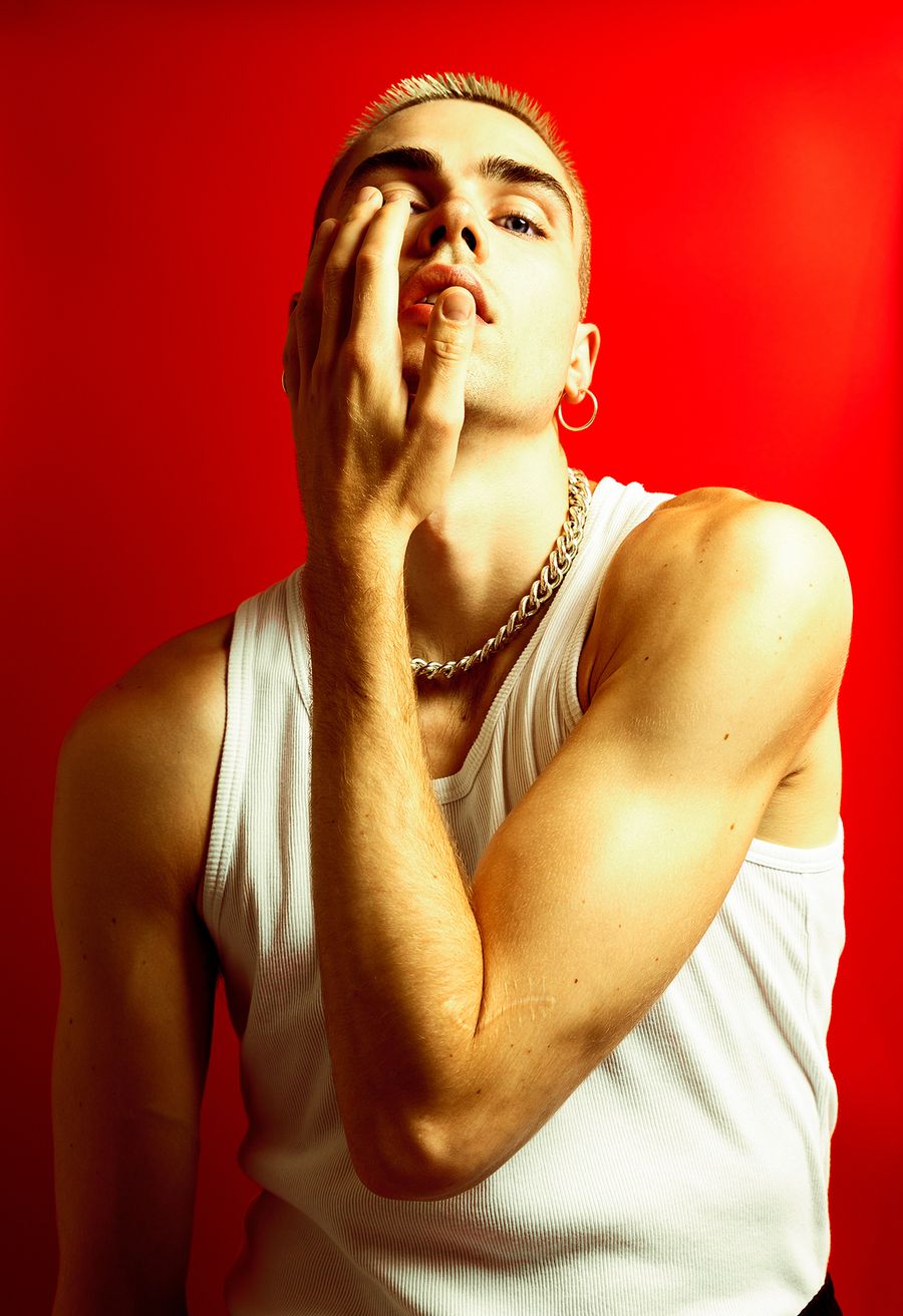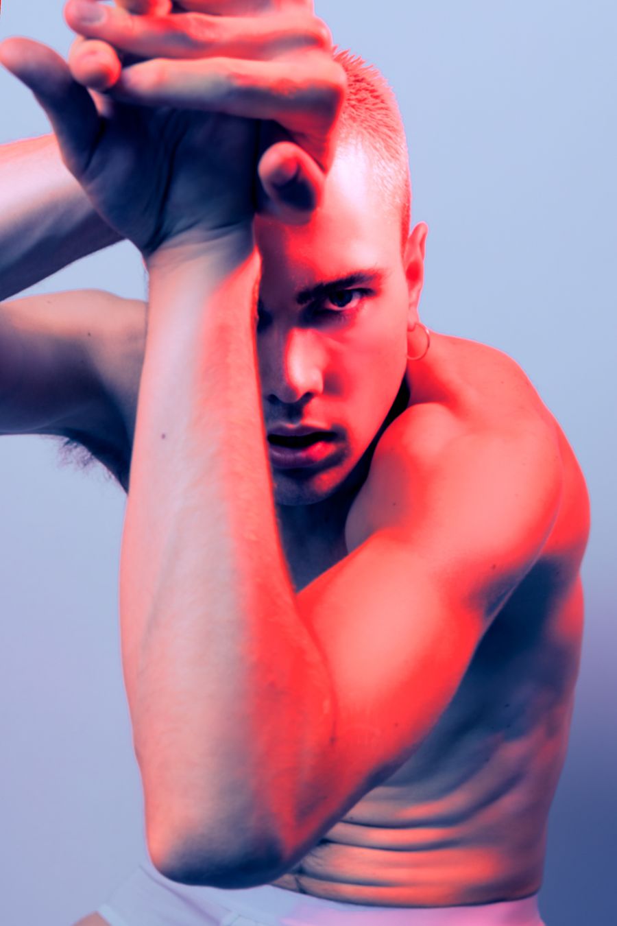 Photography by Sonia Teruel. Model is Malte Bossen at Model Werk. A KALTBLUT exclusive story about body language, physicality and non verbal communication through movement and color.