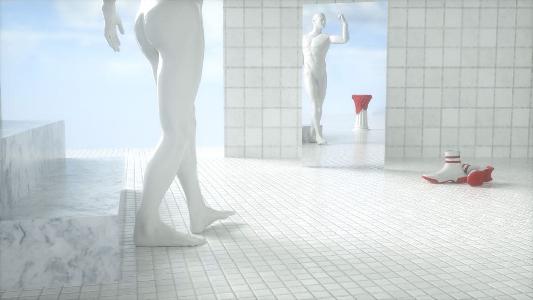 KALTBLUT presents 3D Artwork by Skene Milne. All sneakers by Orsqr. 3D artist Skene Milne, uses technology as a tool for escape — creating dreamy digital fantasies to lose yourself in. Exploring themes of queerness and the divine, Skene imagines a utopic digital paradise in which an online generation can immerse themselves in and be free of judgment.