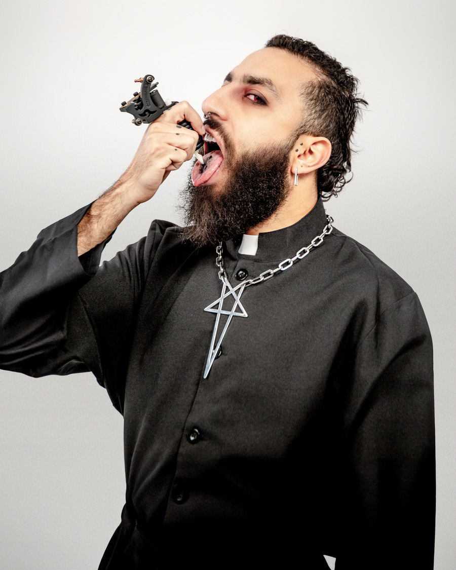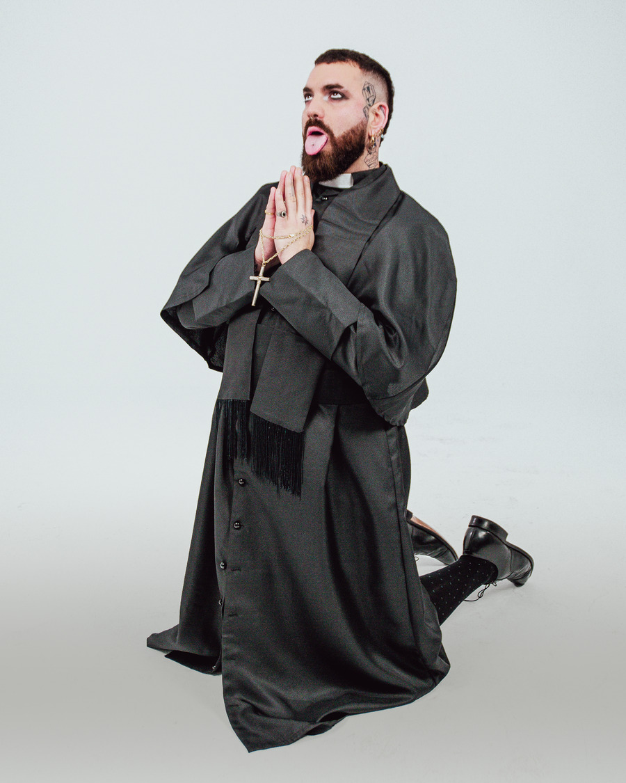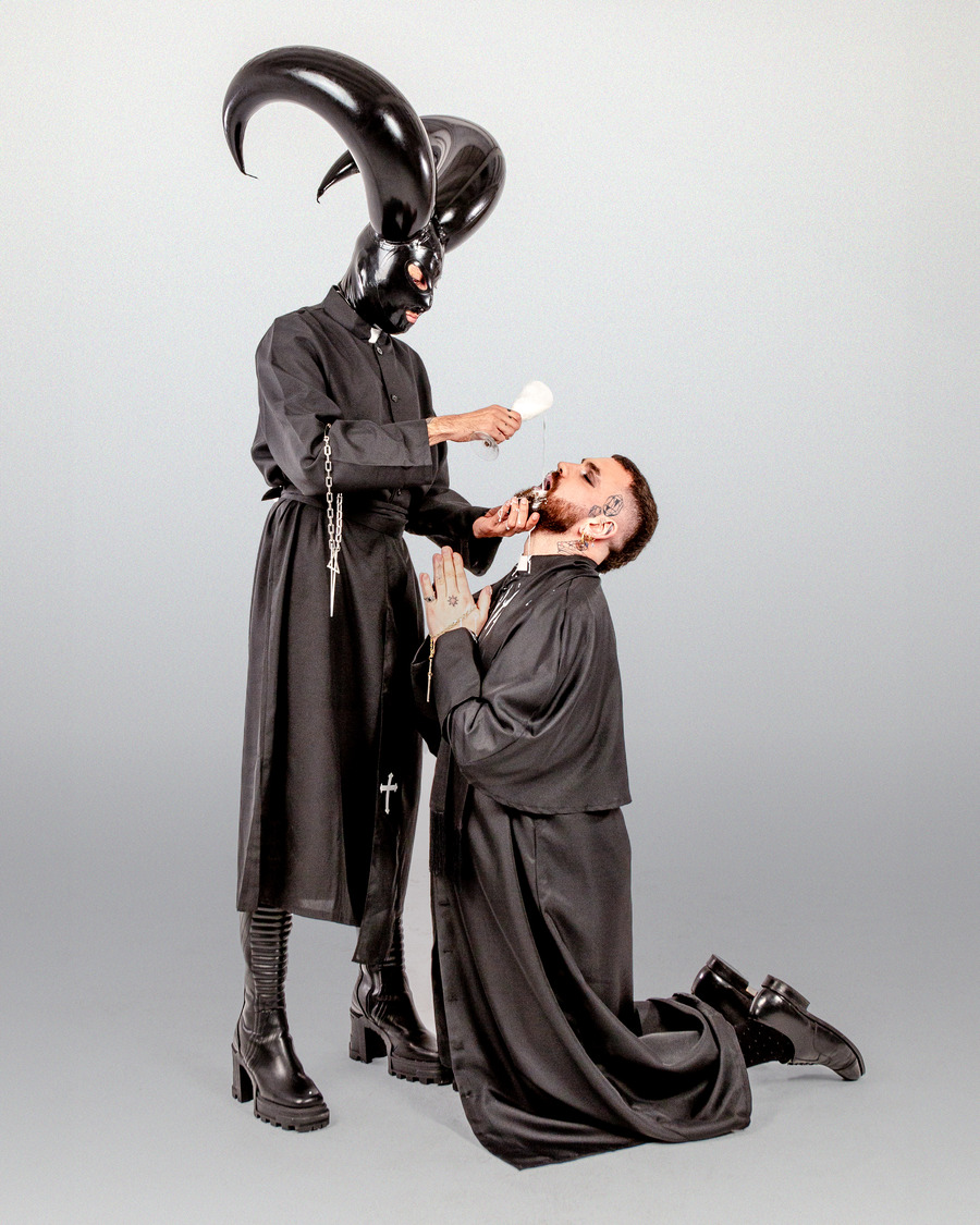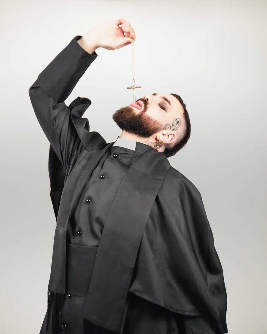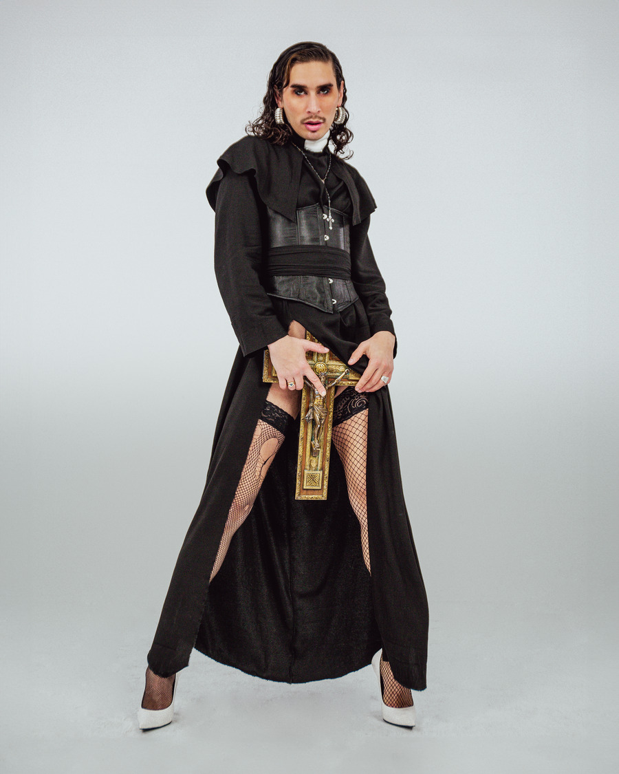 “Divine Defiance” brings us a collection of 12 defiant queer men, each assuming the role of a spiritual minister, not in the name of austerity but in a jubilant declaration of their intrinsic identities. Adorned in traditional clerical garbs reinvented with a twist of towering stilettos, provocative playthings, and vibrant tokens of queer culture – these figures act as a scintillating critique of societal duplicity. Echoing the mainstream adoration garnered by Rome’s notorious “Hot Priest Calendar”, this project braces itself for the inevitable contention and misconstrued vilification for its candid celebration of queer livelihoods.