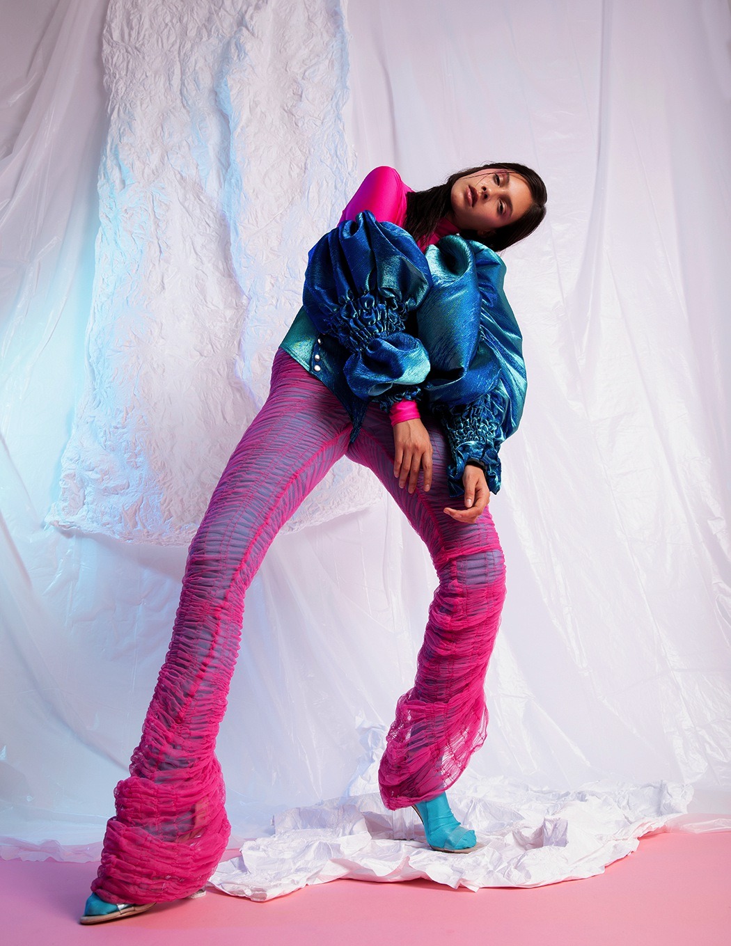 This collection is a representation of complete opposites and the beauty of finding the perfect middle. Asymmetry is exactly the middle. The garments are mainly playing with the perspectives of the viewer. Each perspective will look like a different piece. When each view is put together it paints a perfect picture of asymmetry. Each colour would not normally be combined with one another, and exactly what makes for a phenomenal overall image. Melting the fabrics together not only shows the climate change in terms of the desert heat that is rising but also in the ice caps that are melting. This Collection is the perfect gathering of negatives and positives that great the middle that we are all looking for.