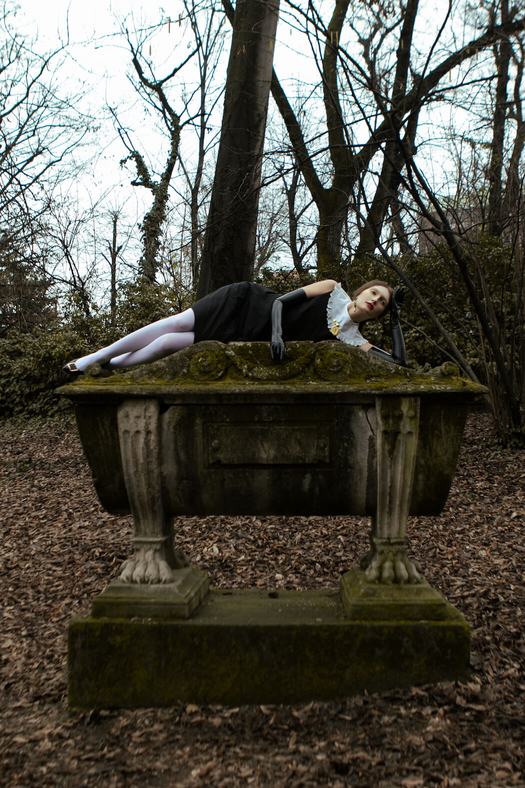 Two souls looking for redemption in the garden of sorrow, taking care of each other, surrounded by lost memories.