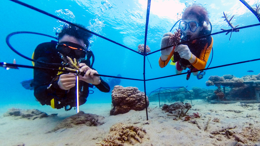 In the local community we teach kids from an early age to understand biodiversity and marine nature. With snorkelling and scuba diving we show these youngsters how to monitor the nurseries and the coral, so that they can understand how important their role is in this battle to repopulate and protect the coral reefs.