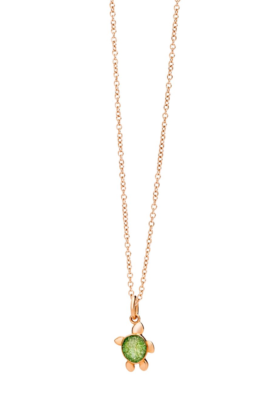 The new limited edition turtle pendant made of rose gold with green glitter enamel and engraving on the back is the symbol of the initiative to support the hawksbill turtles in cooperation with the WWF. As the emblem of nature, the tender and precious turtle, which is associated with the WWF, like all DoDo supporters in animal form, renews a promise to always work for the protection of the environment and reminds us of all of our responsibility towards the planet. DoDo has always cast protective living beings in gold and its community