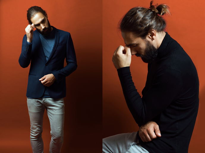 A KALTBLUT exclusive menswear editorial. Photography & Retouch by Florian Gimbert. Model is Samuel Lhermiller signed at DMA Agency. Make up and Hair by Alexia Dalmas. Stylist is Alexandre Blanc using fashion by Sandro Paris, Texto, Zara, Joe Retro, Brice amongst others.