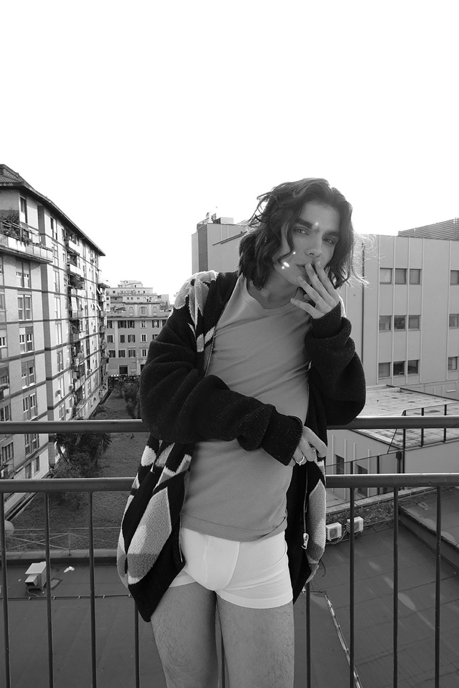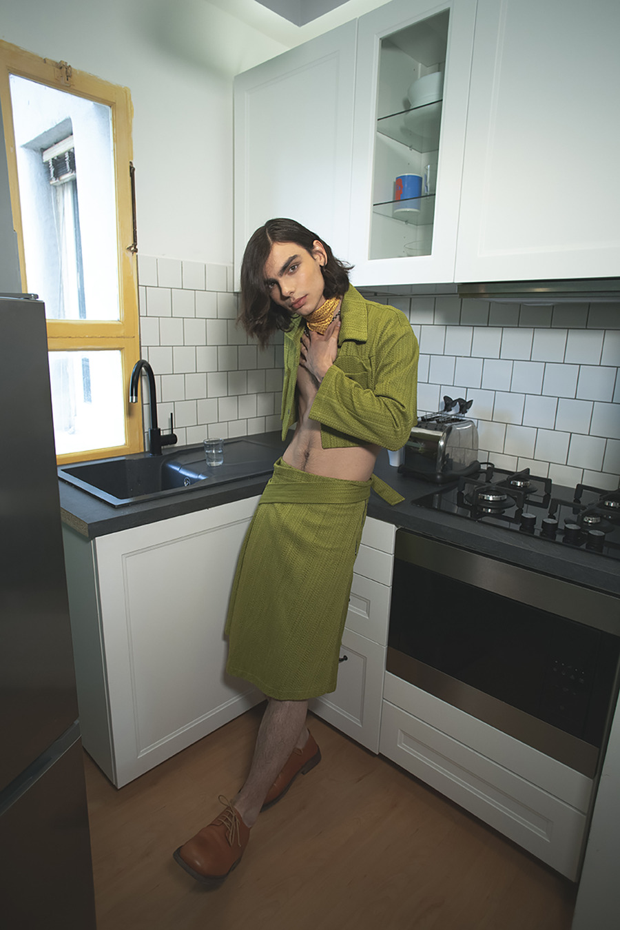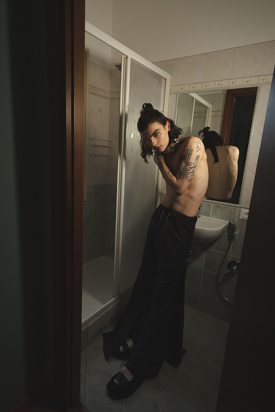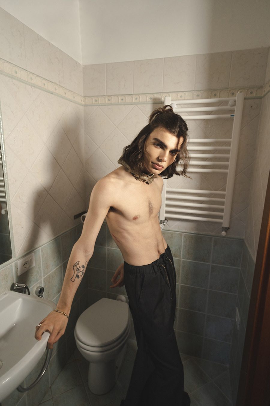 A KALTBLUT exclusive. Photography by M. Gaia Marotta. The model is Diego. Make Up and Hair by Camilla Guadagnoli. Styling by Corinna Vio using Superodra, Ritha, John Zucca, Giuglia, Creazioni Salesi, Stove Communication, Ugo Federico Ianaro, Davide Gabriele, Dadsit, Marsèll, Lucrezia Rossi.