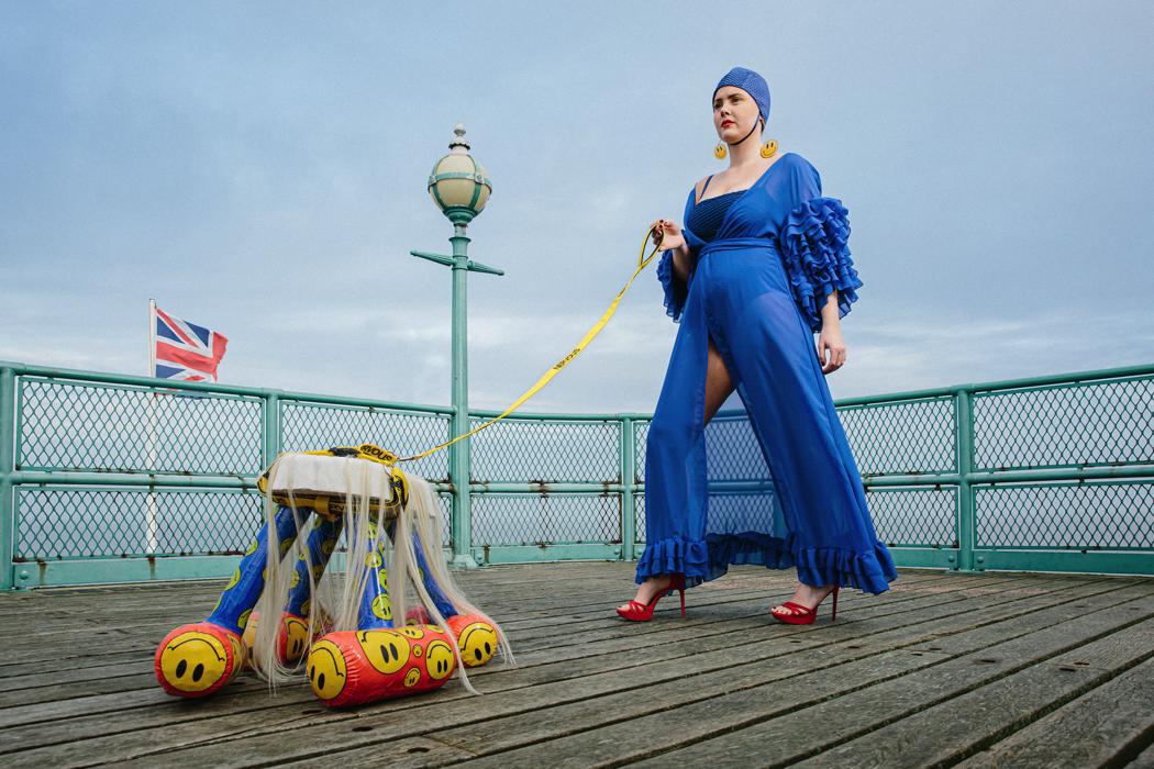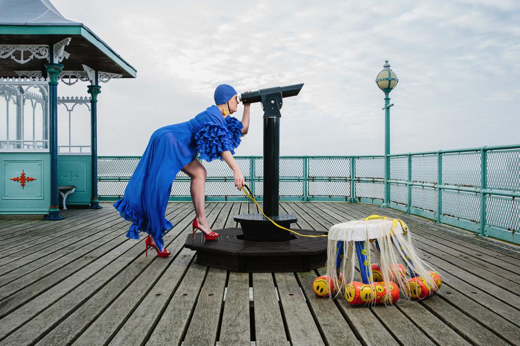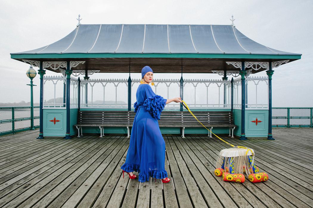 Photographer Nic Kane, costume designer Grace Nicholas and artist Rose Nicholas have collaborated to construct the eccentric world of two best friends. The combination of disciplines allowed the development of an unusual narrative based on a costume and a sculpture. In the backdrop of solitude, Doris and Berti chase their idiosyncratic version of ‘glamour’.
