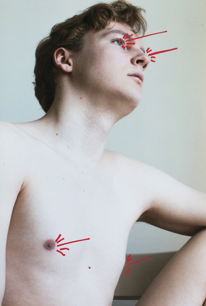 “At first, when photos have been looked at, apart from illustrations, they give a minimalistic sense. The photos consist of portraits and close-up shots of a young man, naked, mostly in front of a flat background with only a few objects being visible in the frame.”