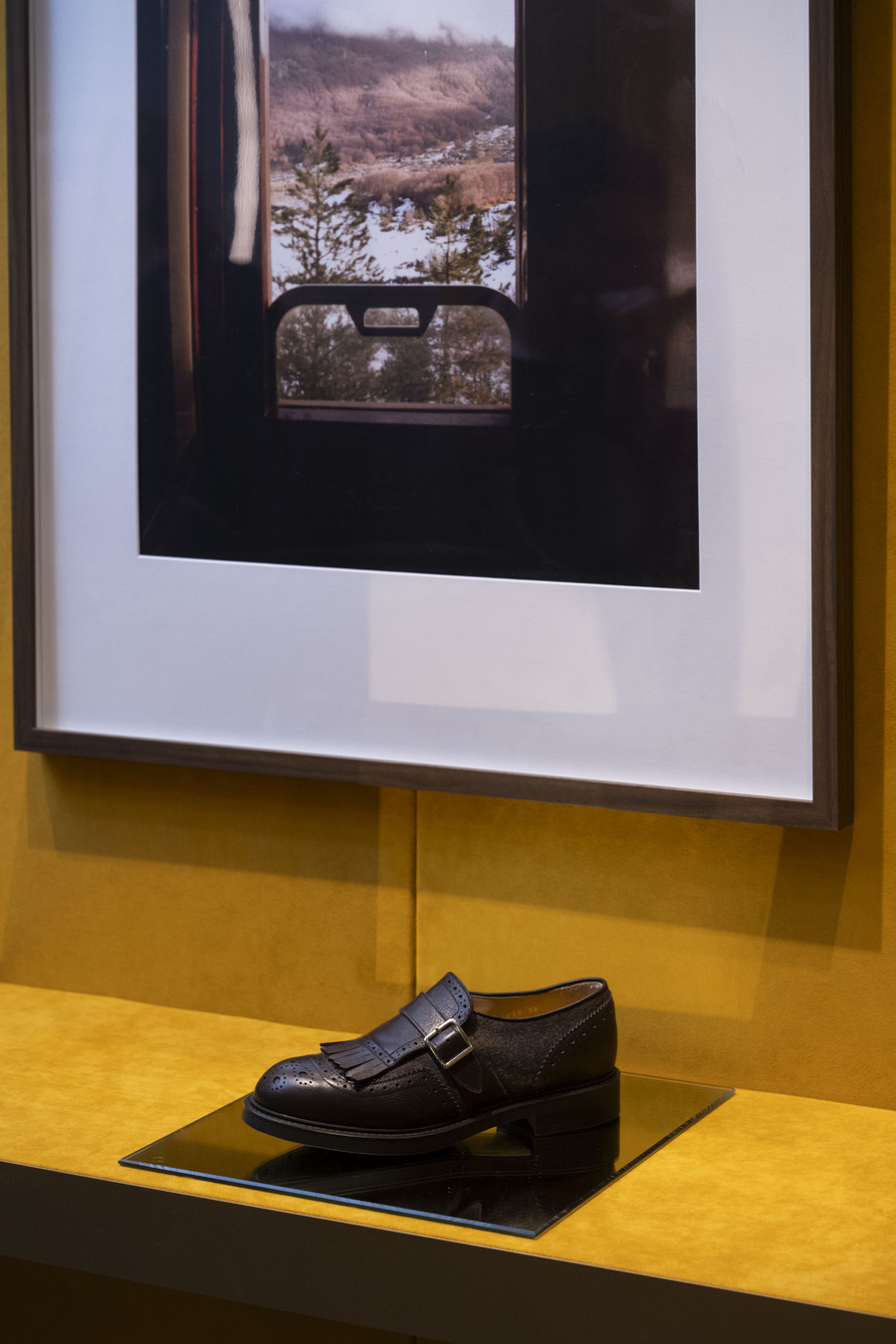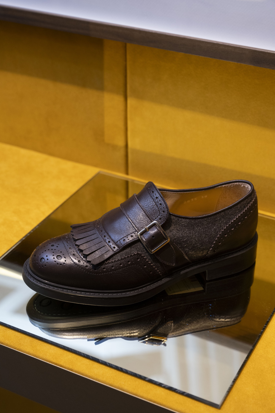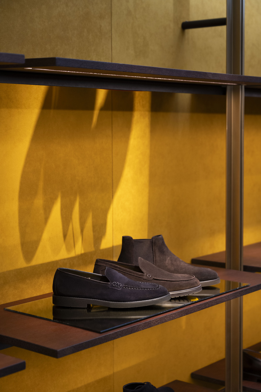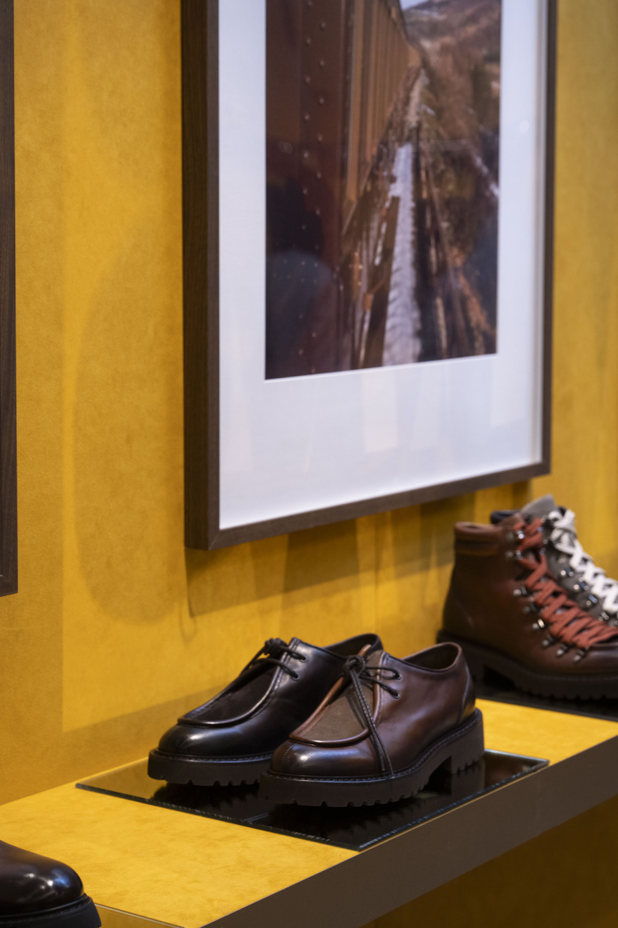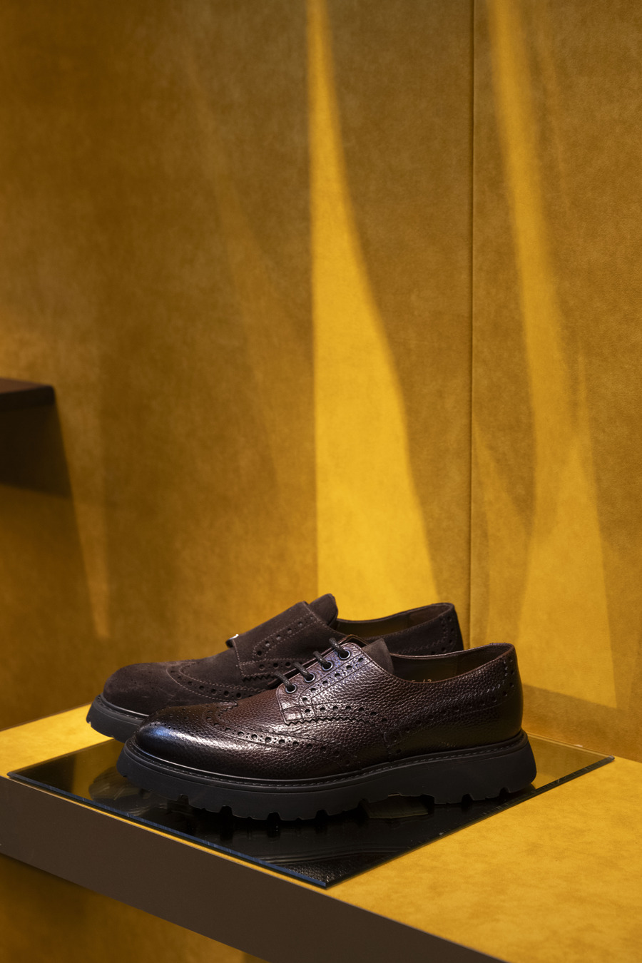 Among the standout pieces is the limited bi-material edition of the iconic Doucal’s PHILADELPHIA 2-hole lace-up. Crafted from lustrous vegetable-tanned calfskin, hand-waxed and finished with aniline, this shoe pairs beautifully with a calf suede vamp. The result? A stunning footwear piece that is not only robust and visually striking but also designed to equip the modern gentleman for both urban escapades and serene getaways.