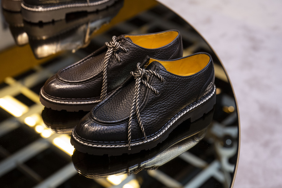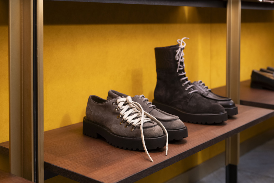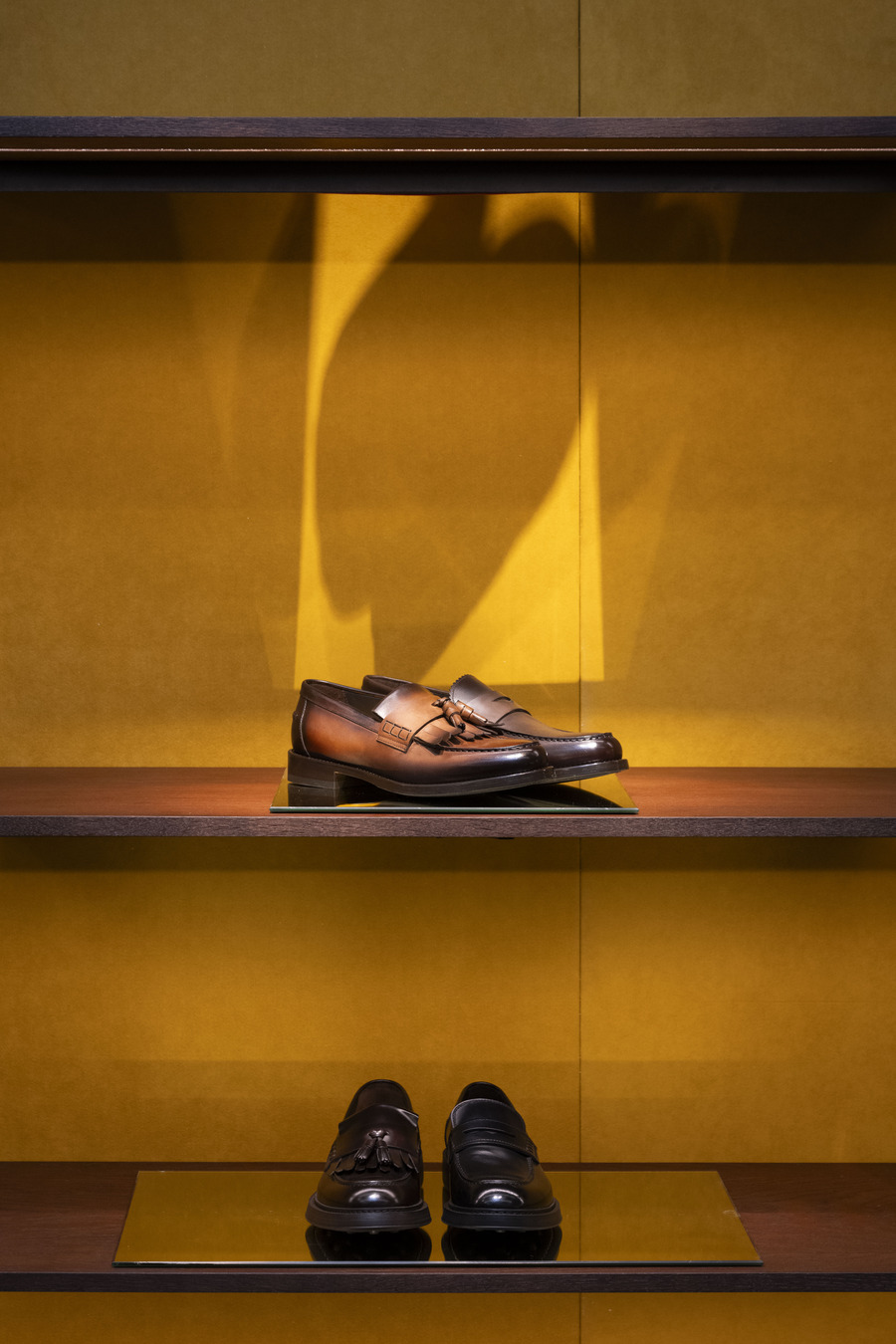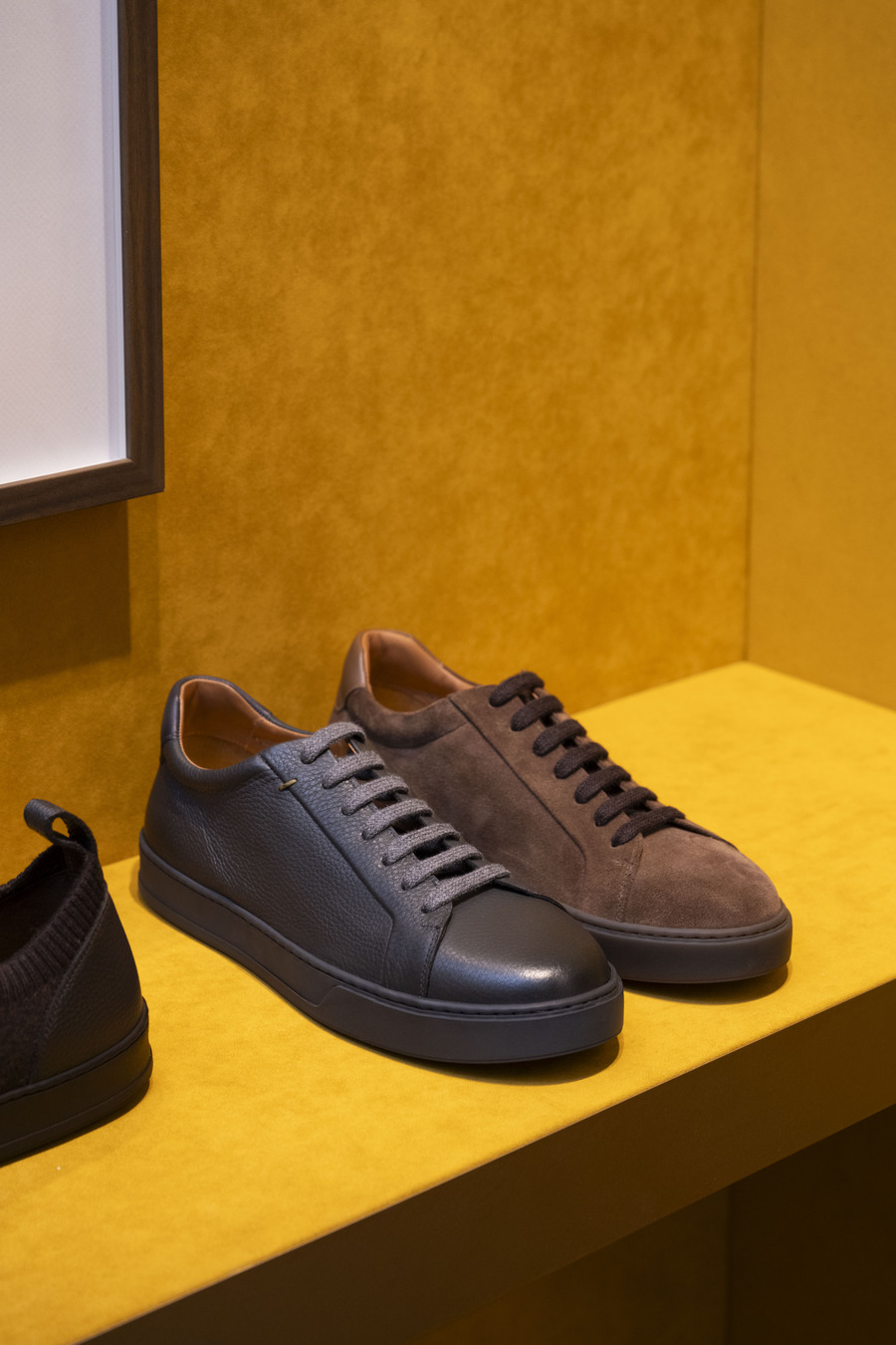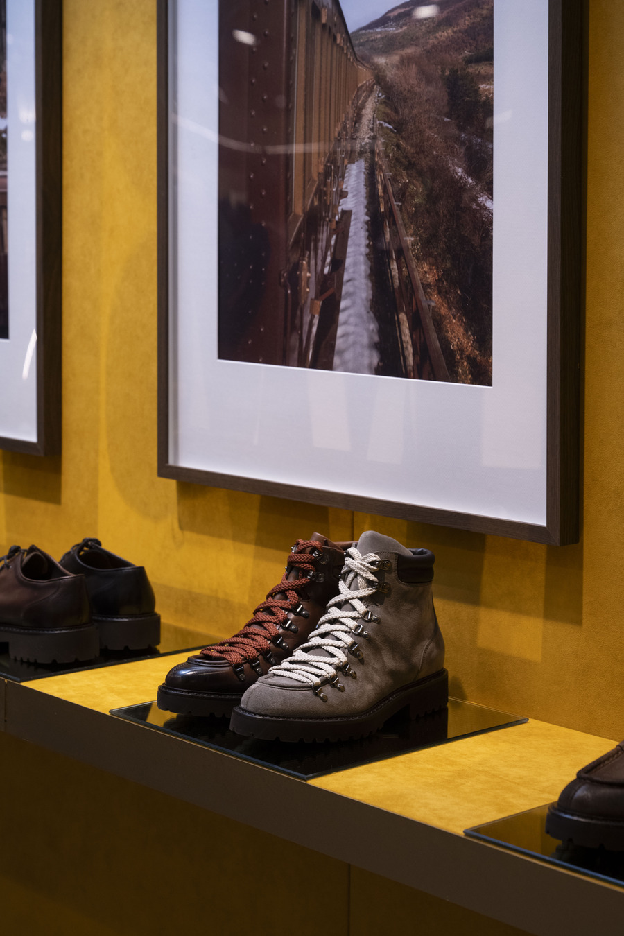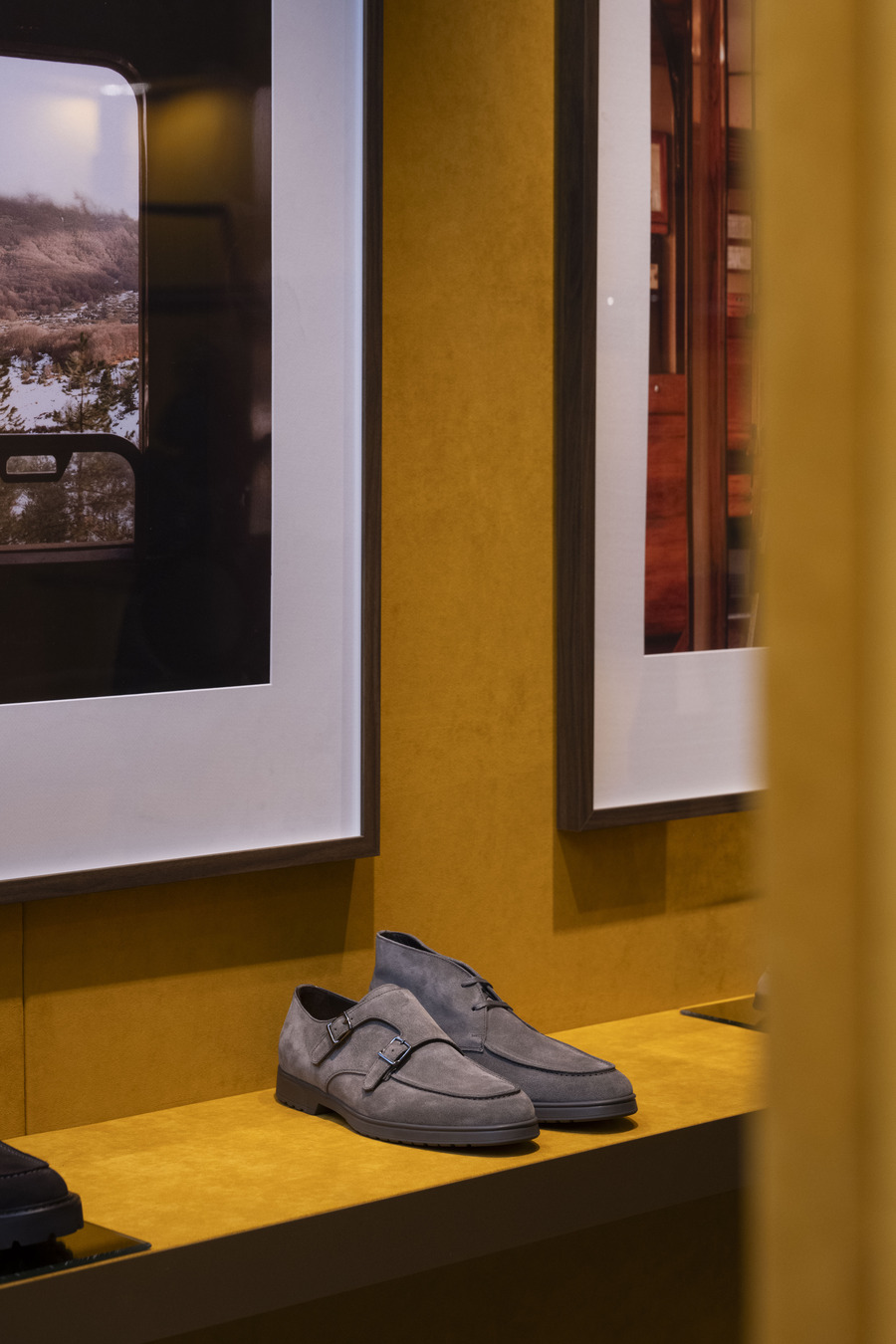 Among the standout pieces is the limited bi-material edition of the iconic Doucal’s PHILADELPHIA 2-hole lace-up. Crafted from lustrous vegetable-tanned calfskin, hand-waxed and finished with aniline, this shoe pairs beautifully with a calf suede vamp. The result? A stunning footwear piece that is not only robust and visually striking but also designed to equip the modern gentleman for both urban escapades and serene getaways.