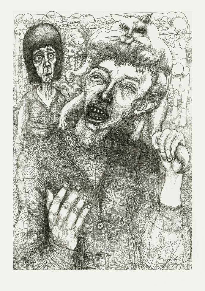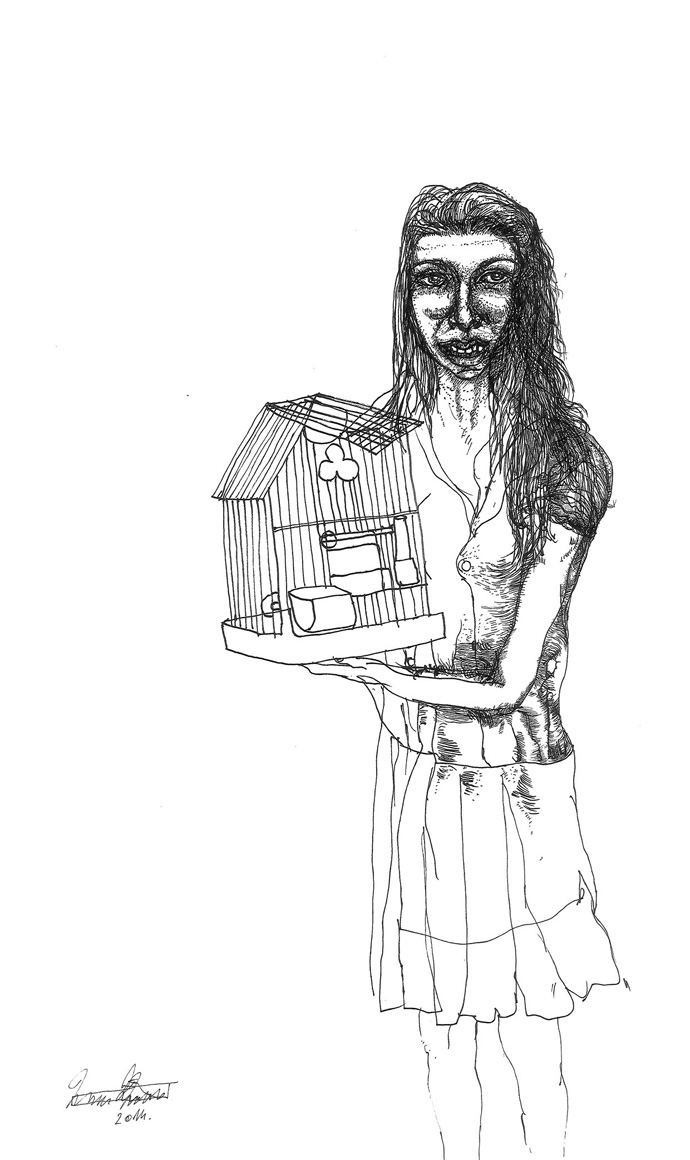 “Facial expression shown on my work is visual representation of complex emotions. Using ink to draw on paper, or making combination with various art media is my way to show different states of mind. Also, I like to draw myself and situations I’ve been, as well as my friends and family, but with overemphasized additions that show how I feel about them or my response to them.”