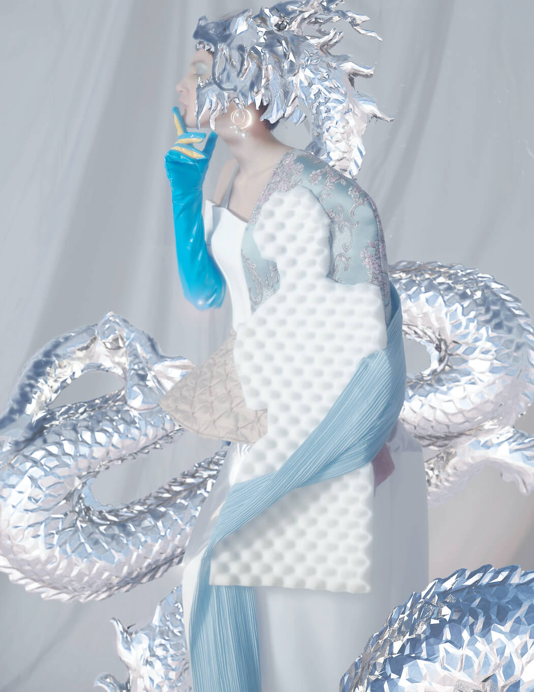 Qiuyi Luo is the creative director, CGI artist of this collection “Dragon & Chaotic Venus” who is based in New York. He loves using multiple media and founded his brand Arc Luo in 2020.